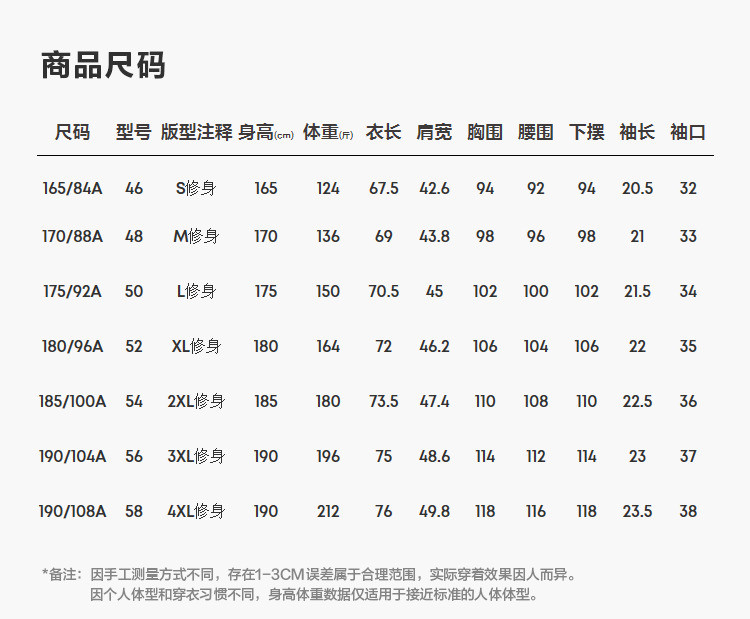 | 尺码 | 衣长(cm) | 肩宽(cm) | 腰围(cm) | 袖长(cm) | 胸围(cm) | 下摆围(cm) | 号型 |