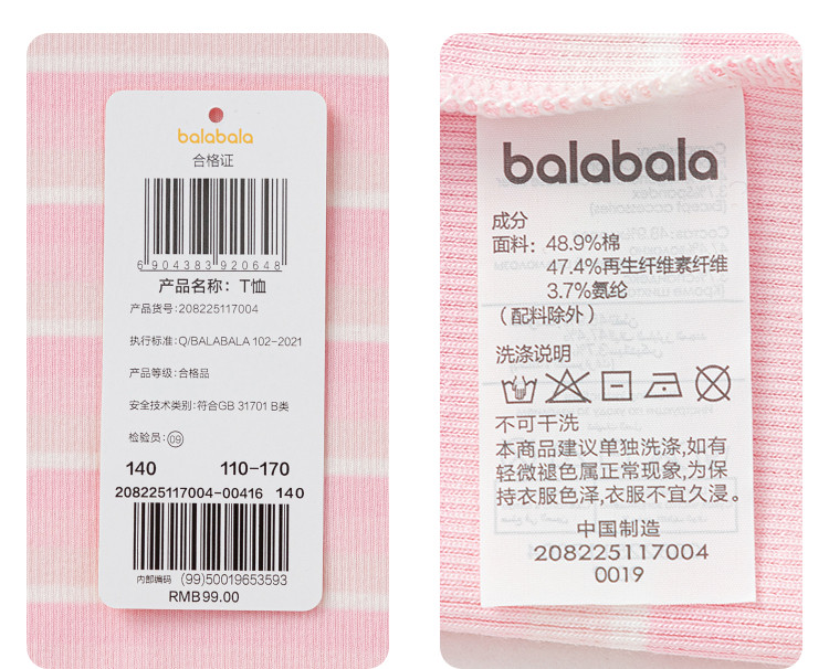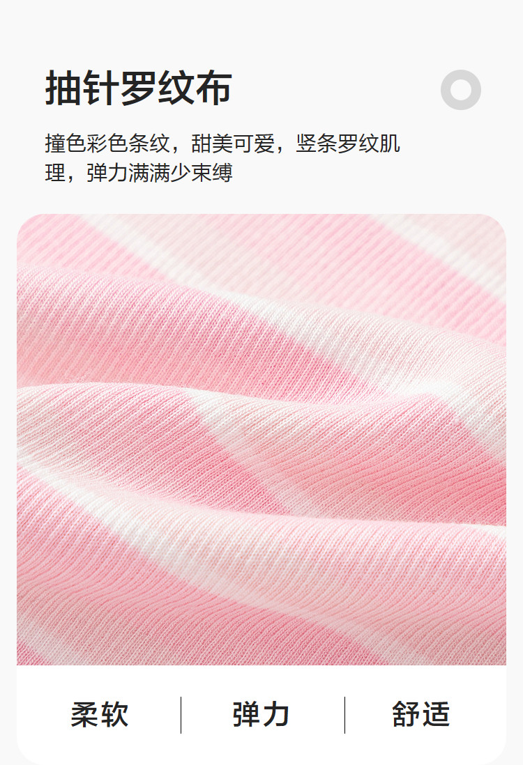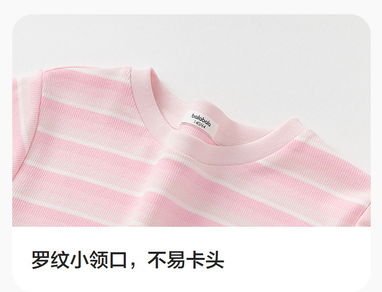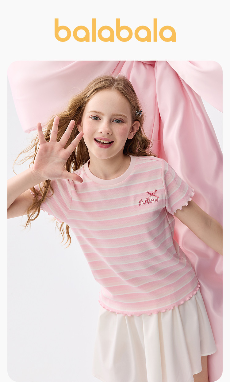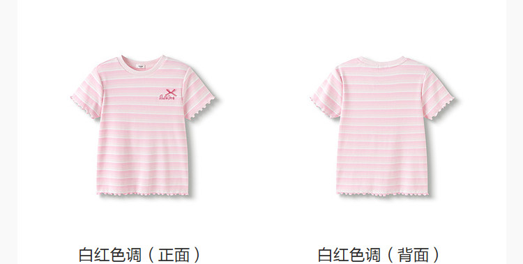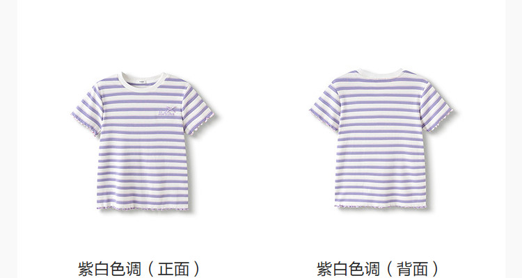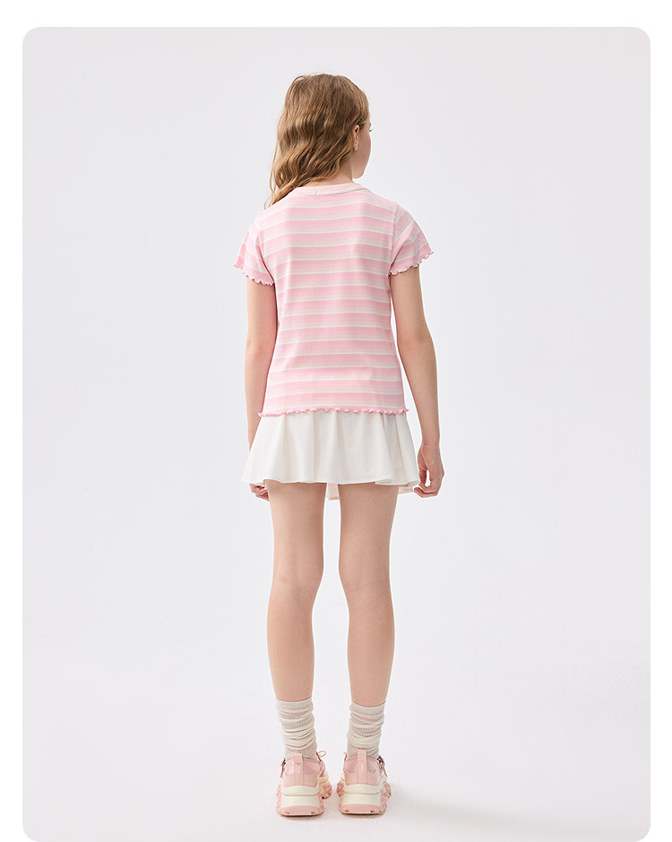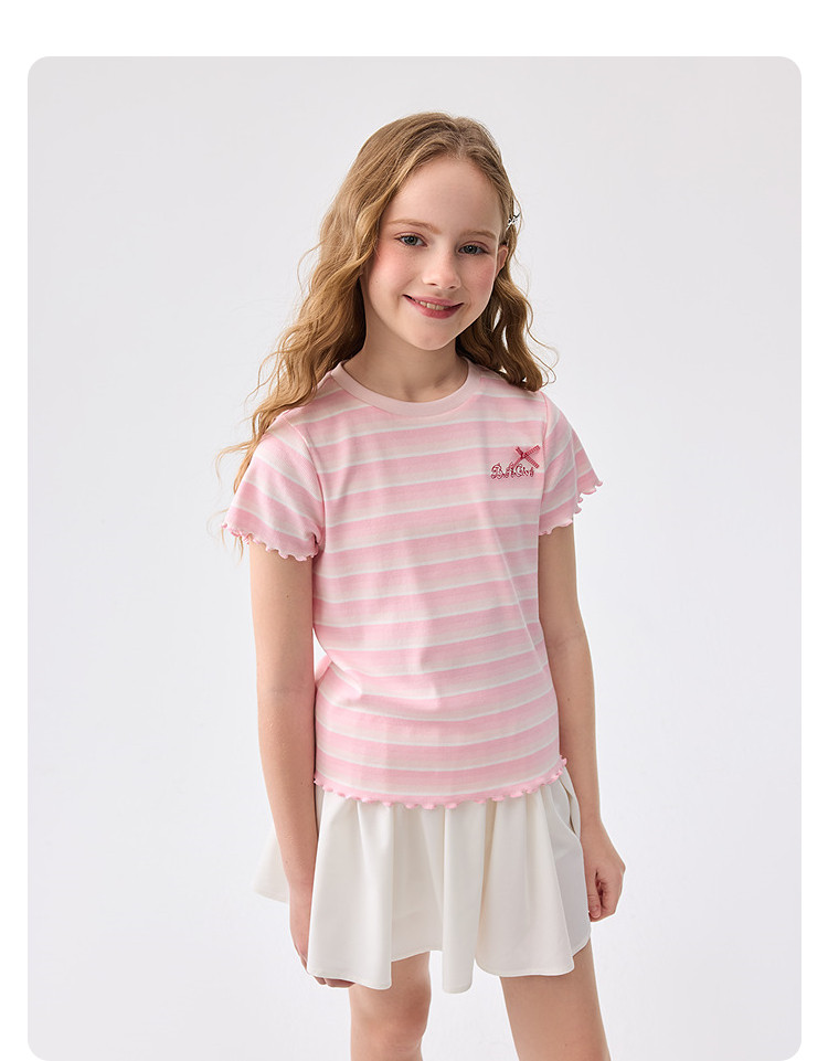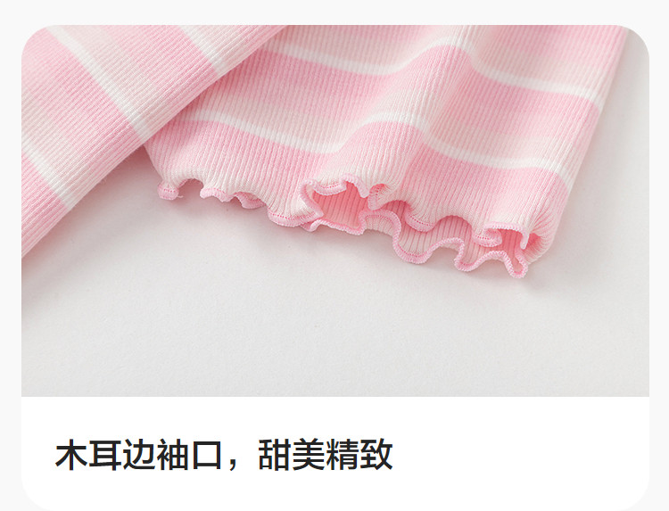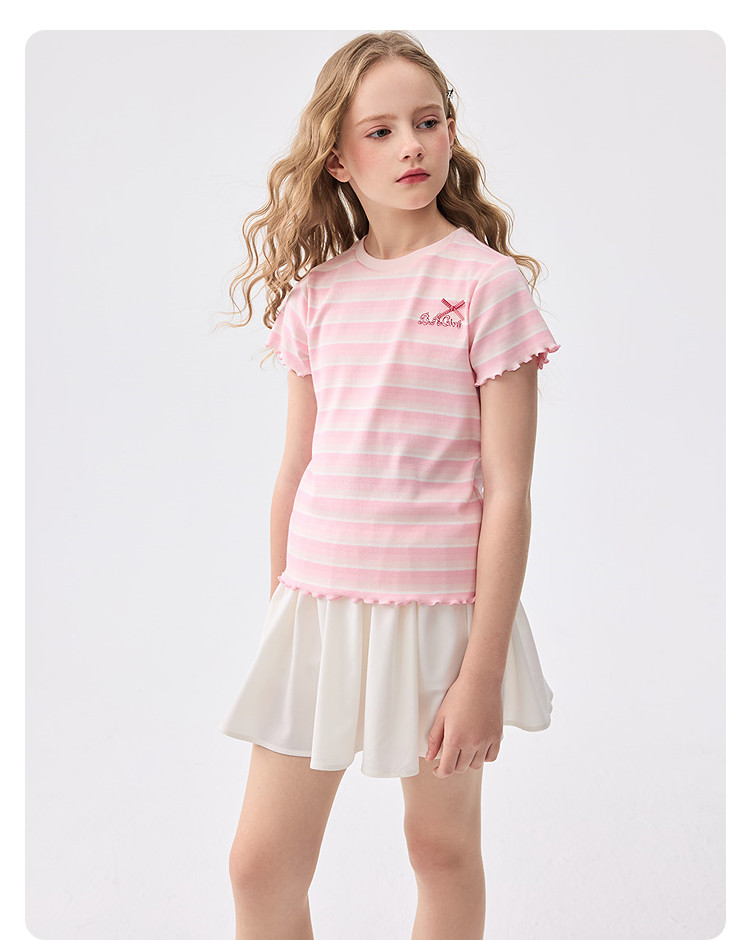 商品名称:撞色条纹儿童短袖T恤女童夏装2025新款童装中大童木耳边上衣 621061