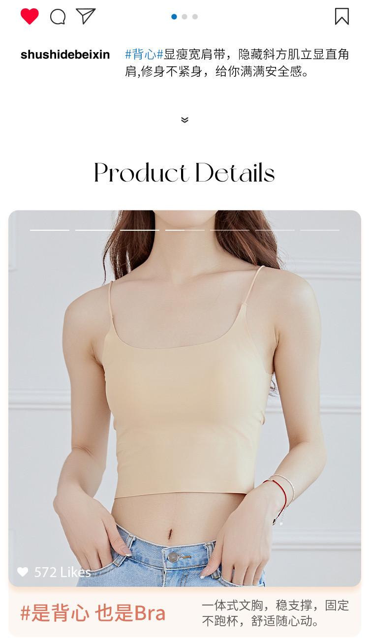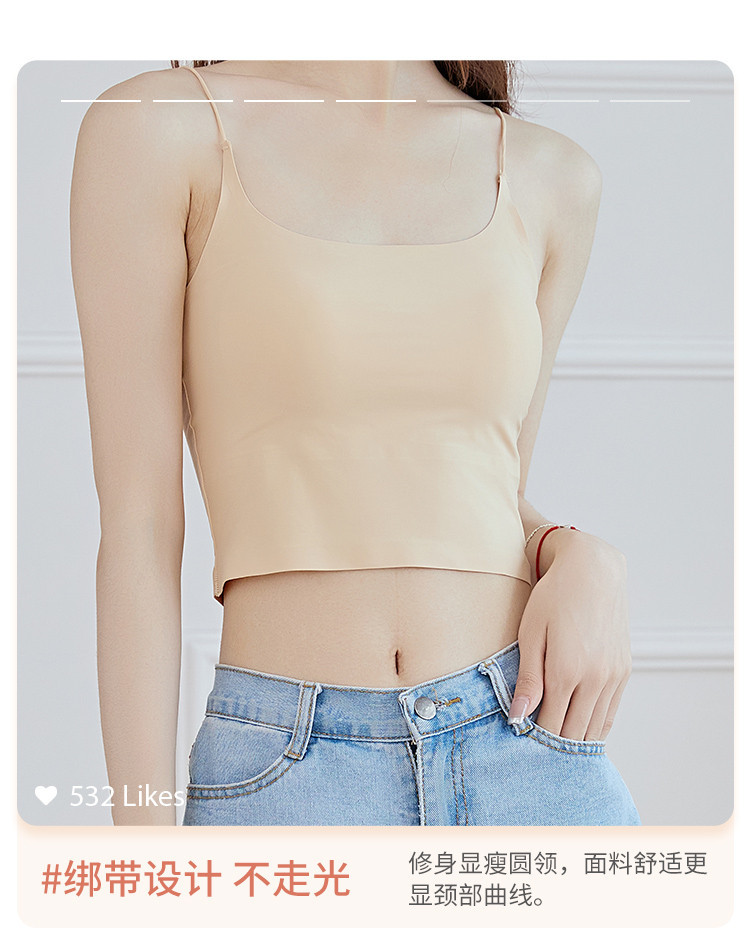 舒适无痕裸感女士吊带背心女带胸垫不跑杯背心女打底内搭可外穿 081867