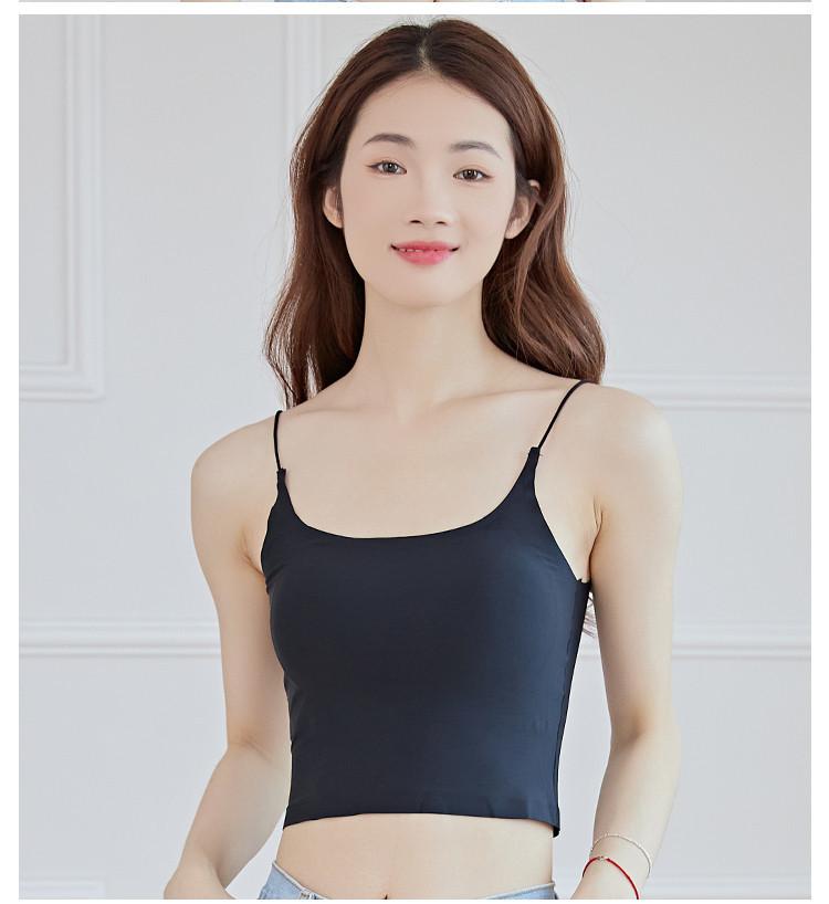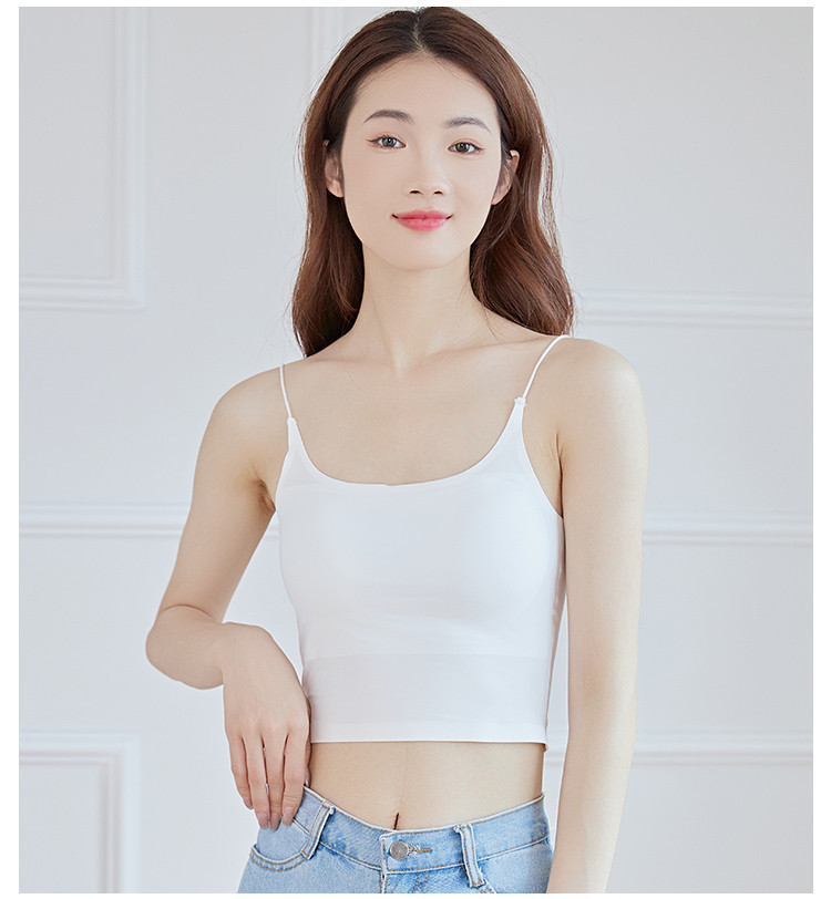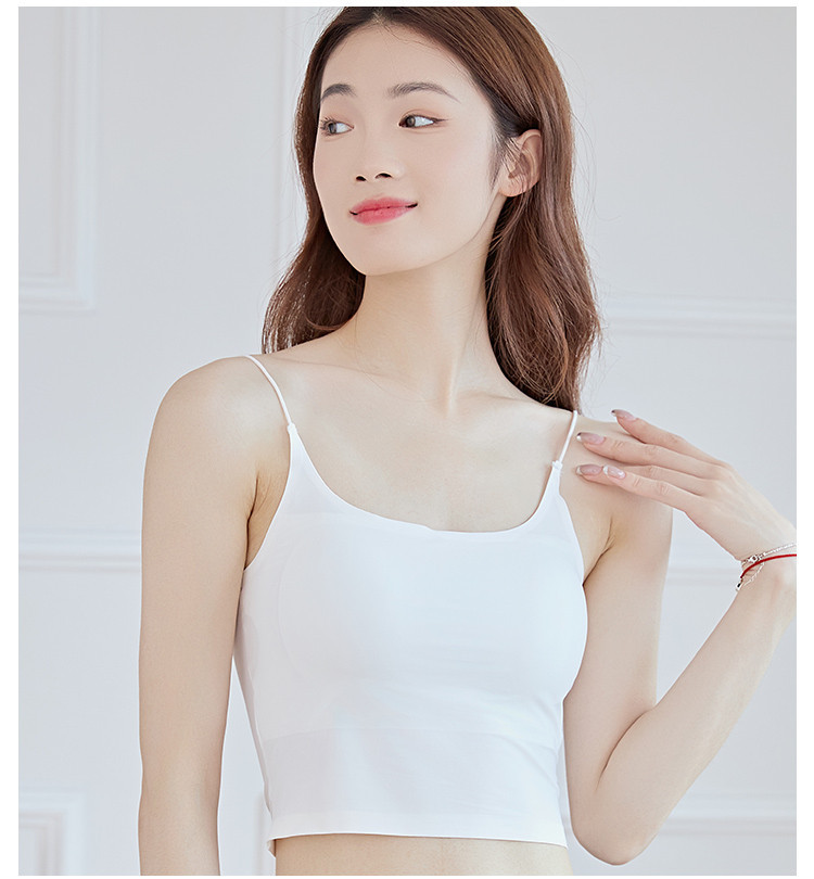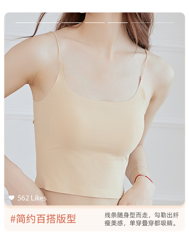 商品名称:舒适无痕裸感女士吊带背心女带胸垫不跑杯背心女打底内搭可外穿 081867