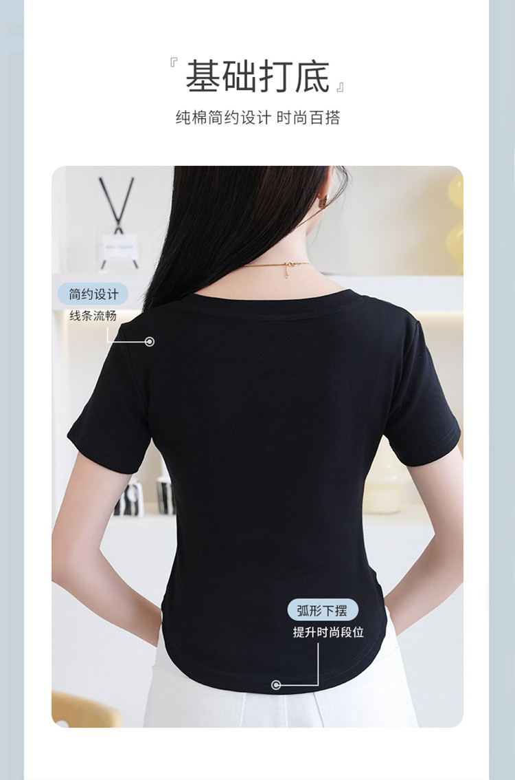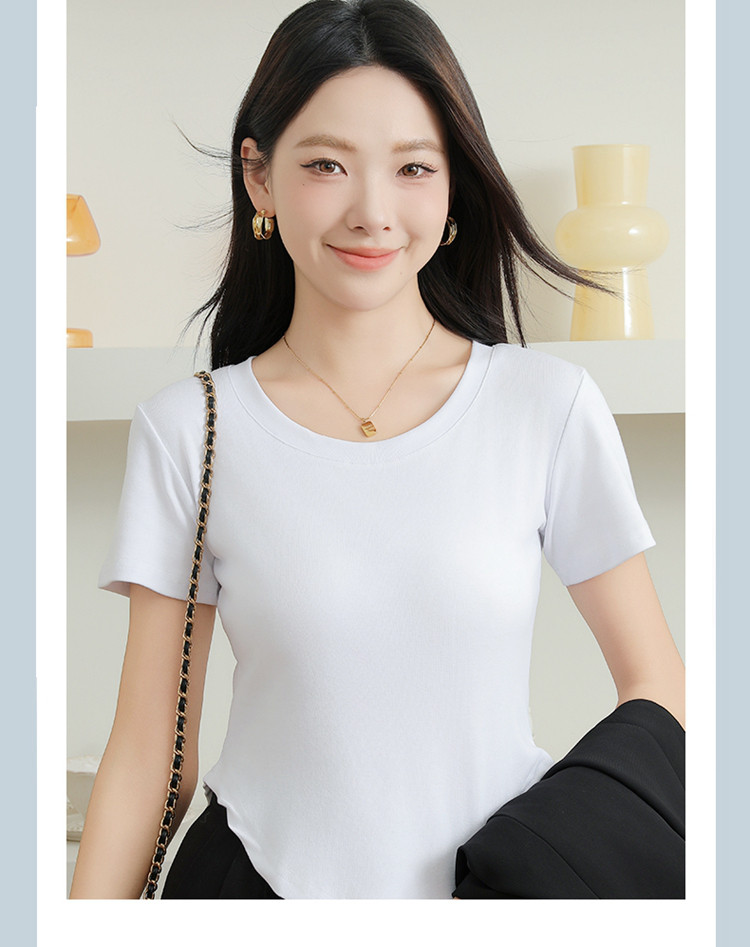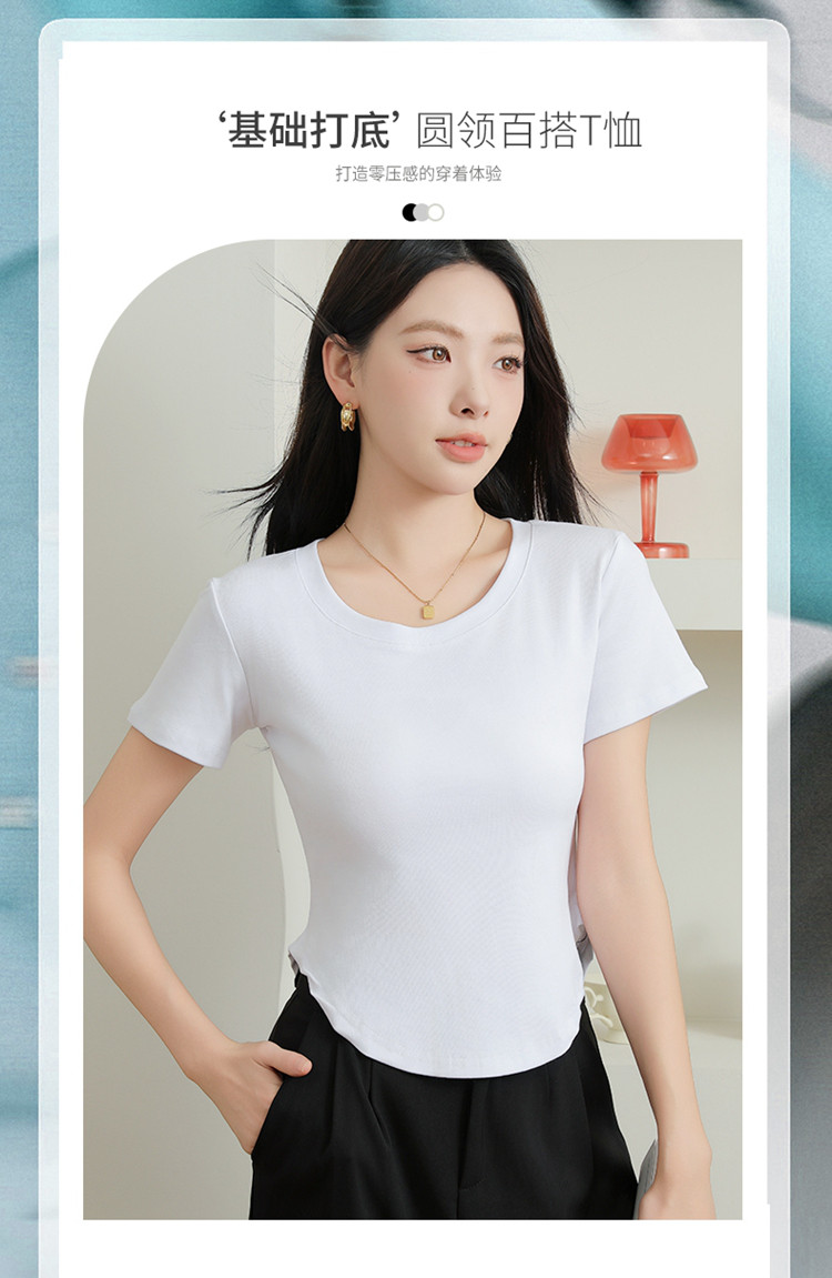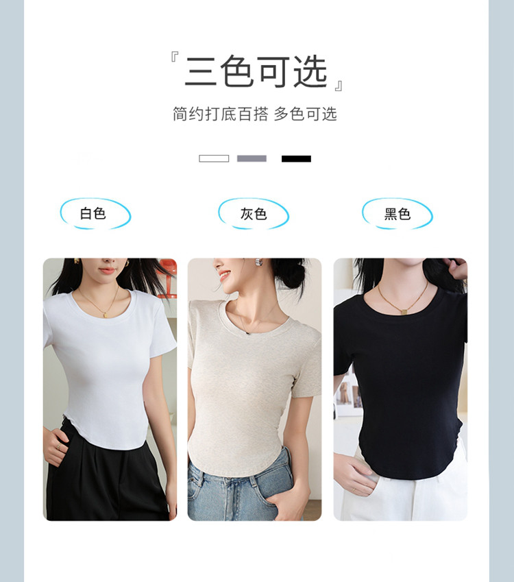 商品名称:【纯色百搭】女士打底T恤女简约休闲时尚百搭基础款短袖T恤女 053195