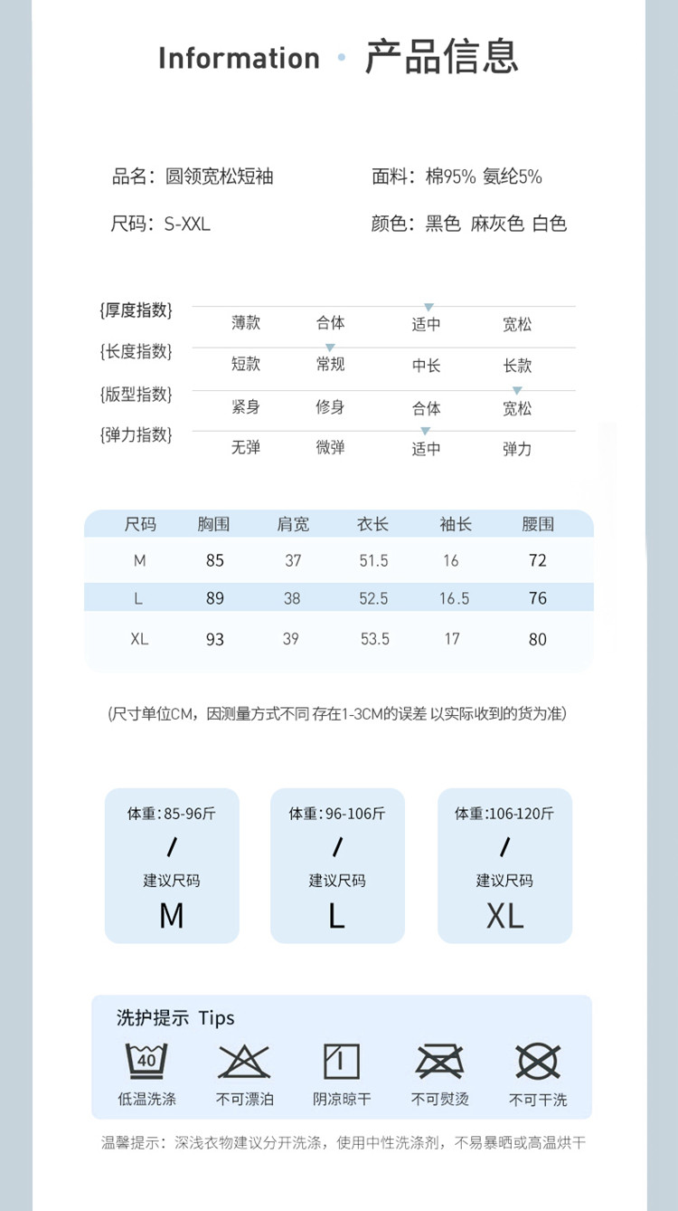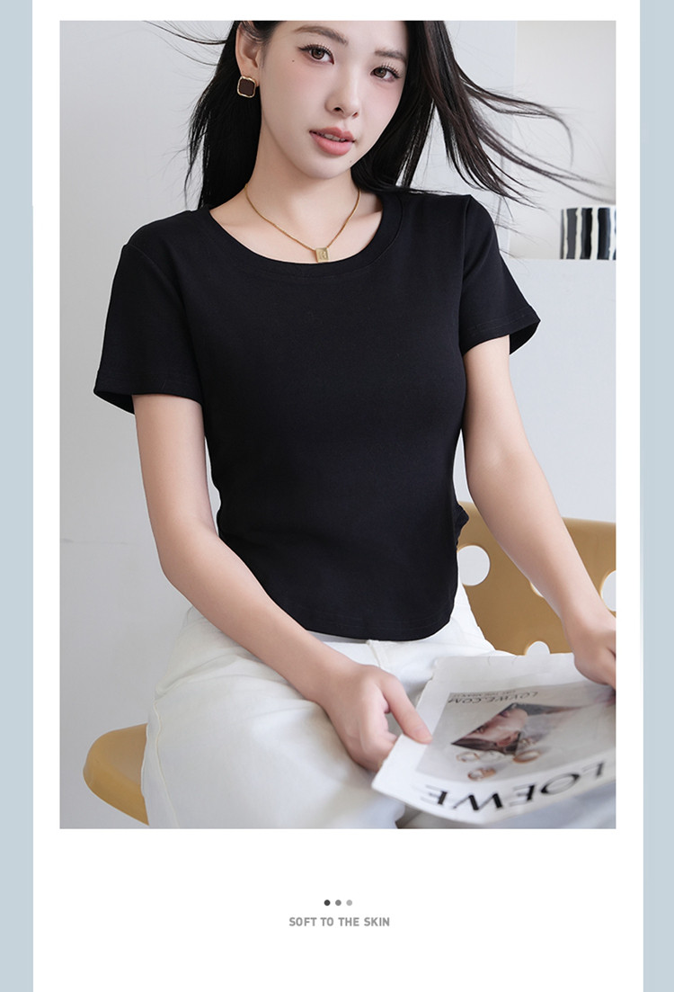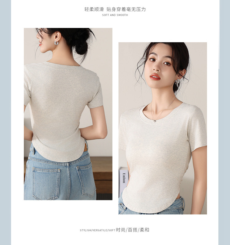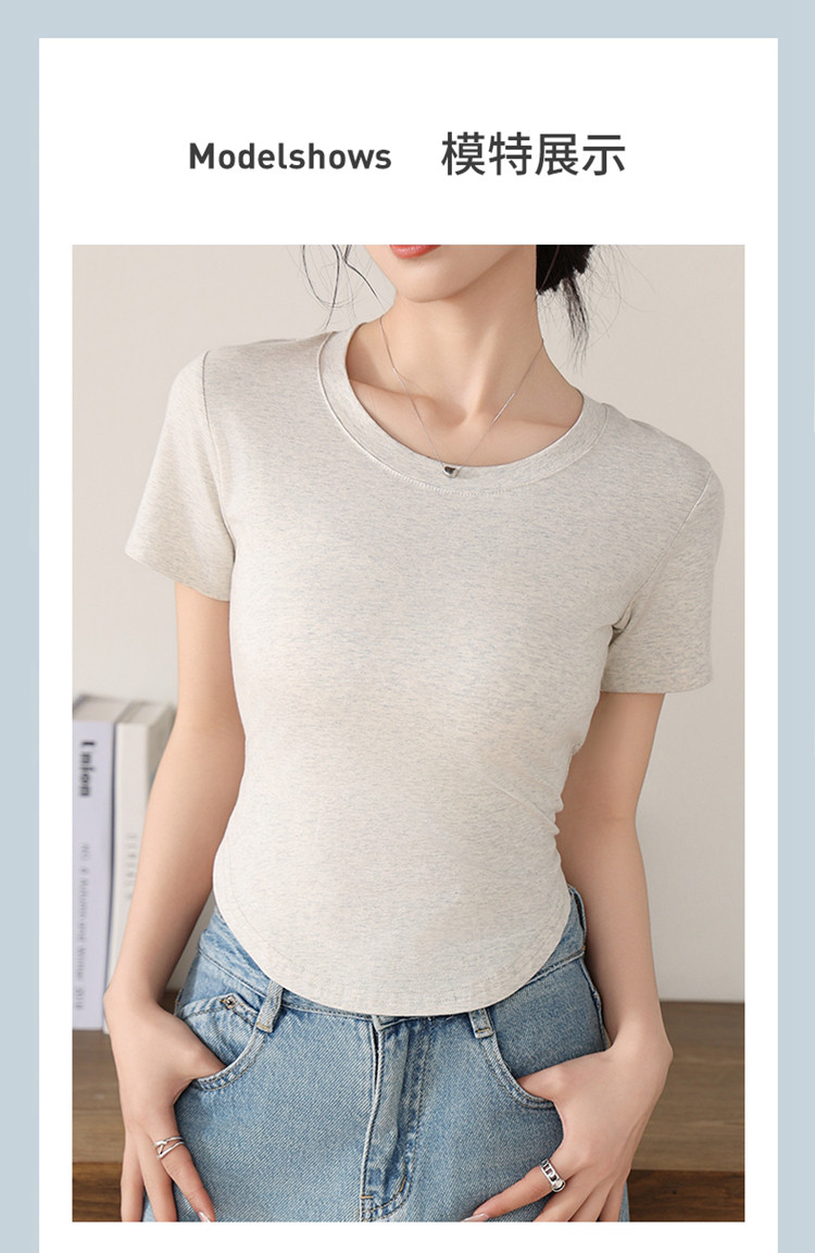 商品名称:【纯色百搭】女士打底T恤女简约休闲时尚百搭基础款短袖T恤女 053195