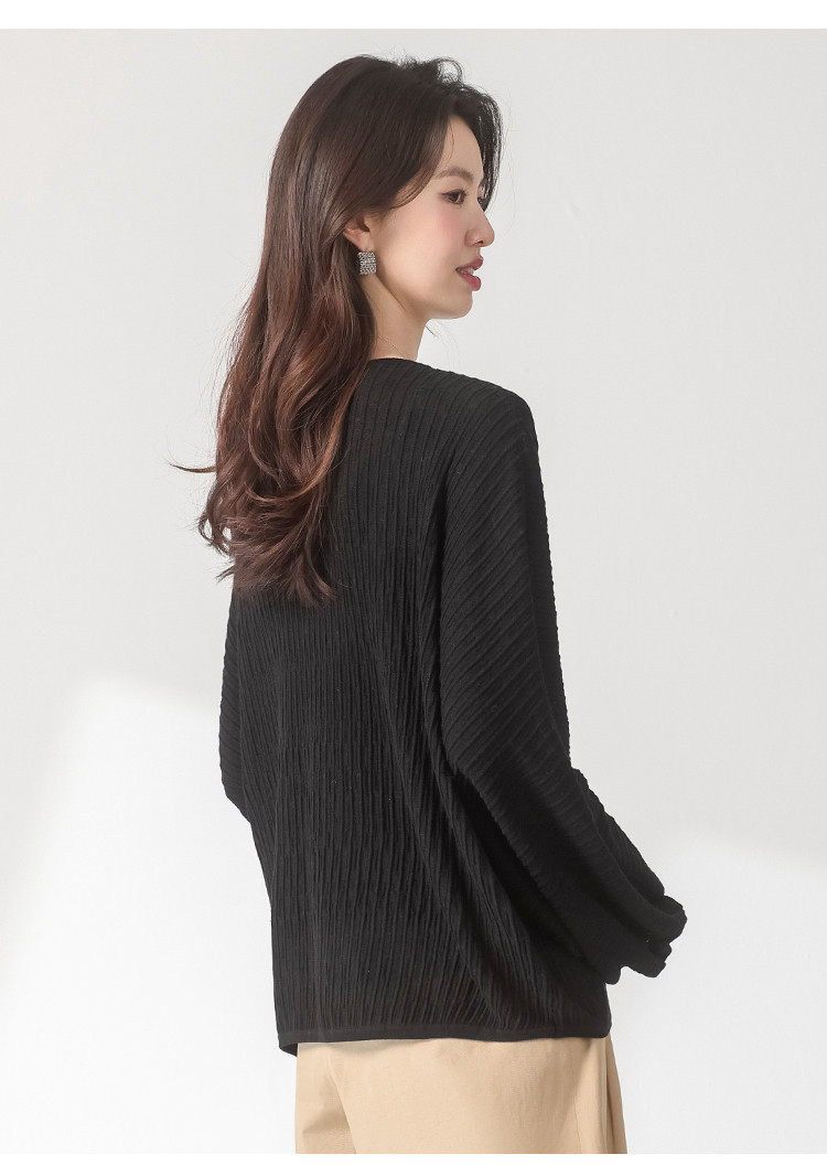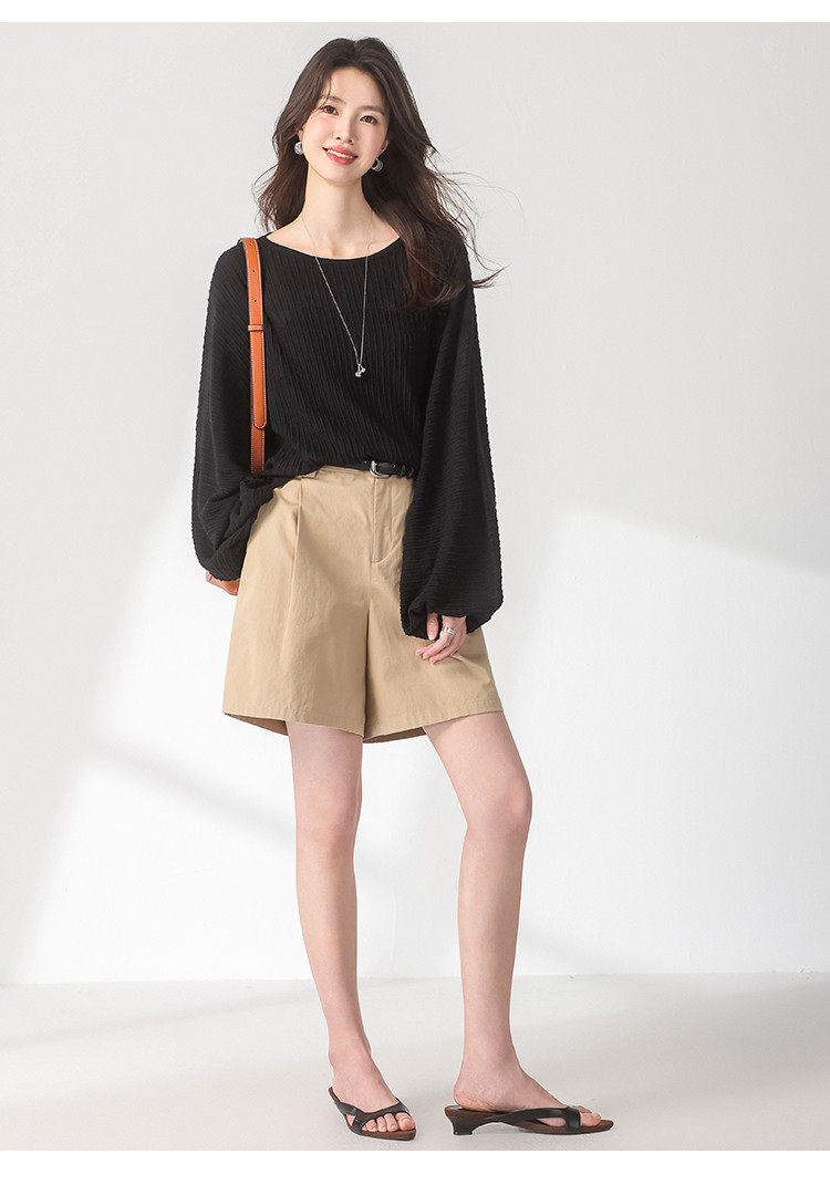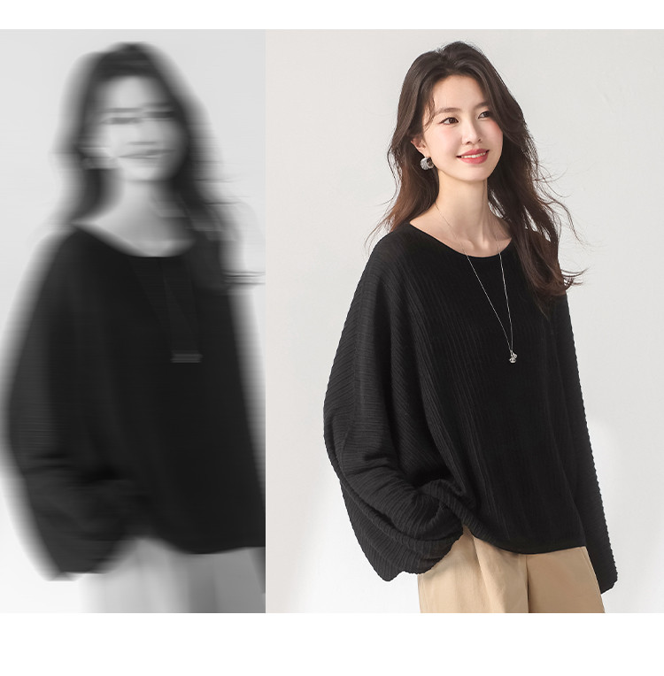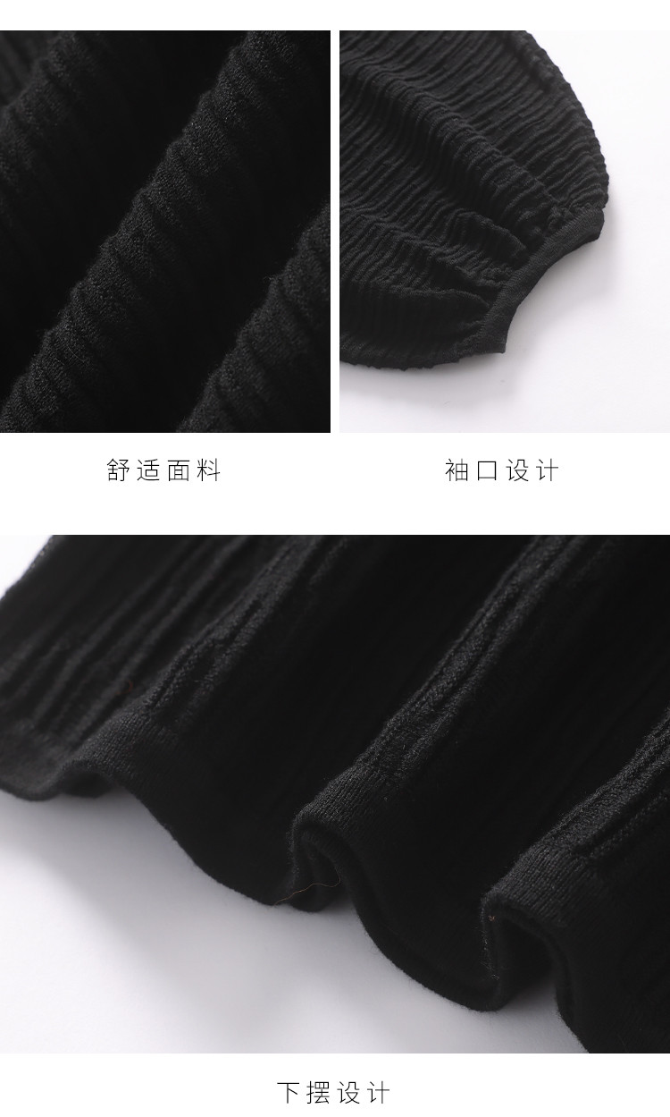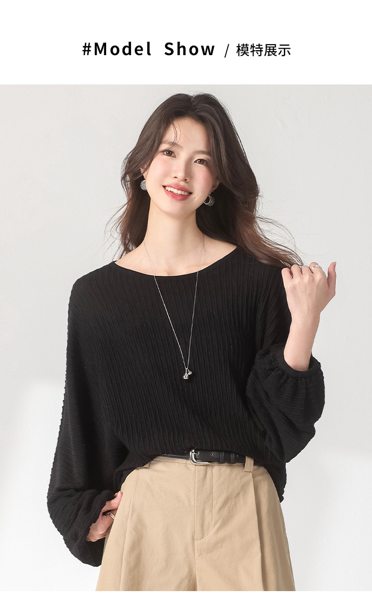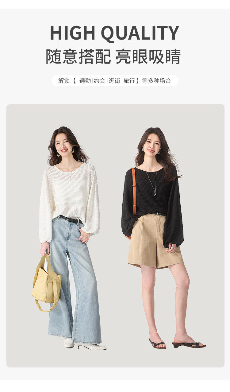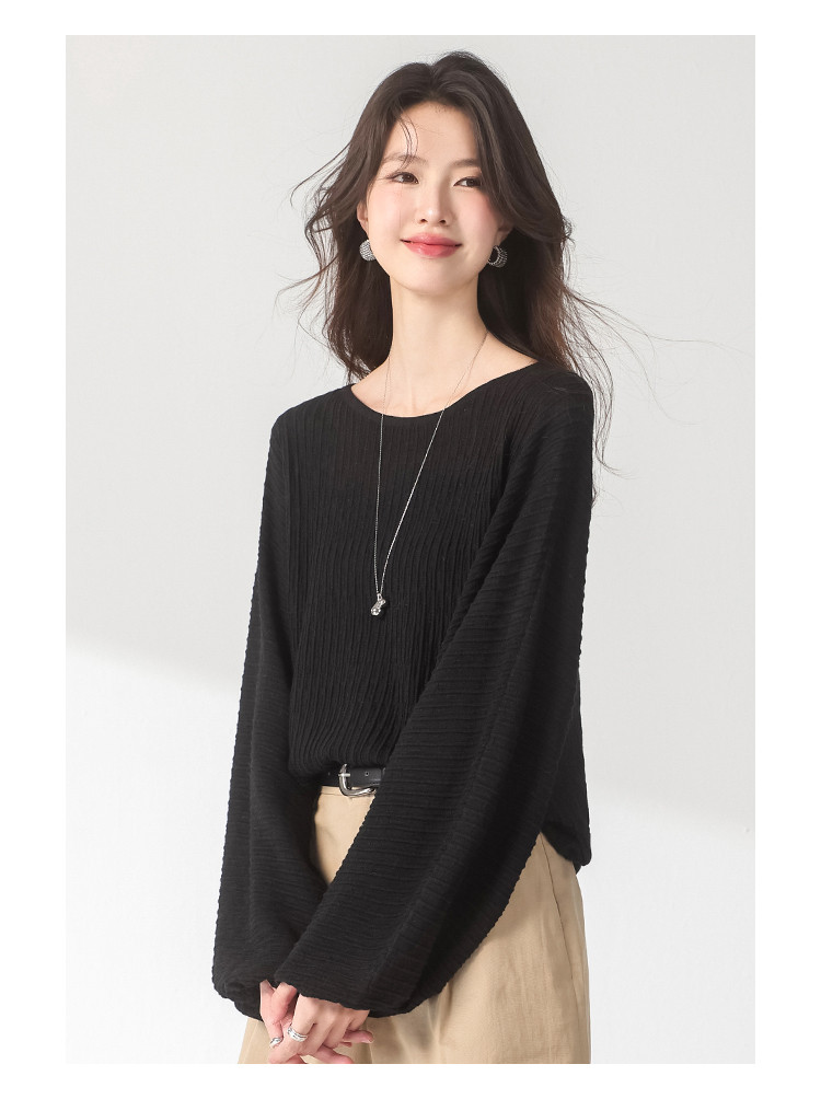 圆领含羊毛宽松灯笼袖针织衫女套头纯色薄款外穿毛衣春夏气质T恤 154963