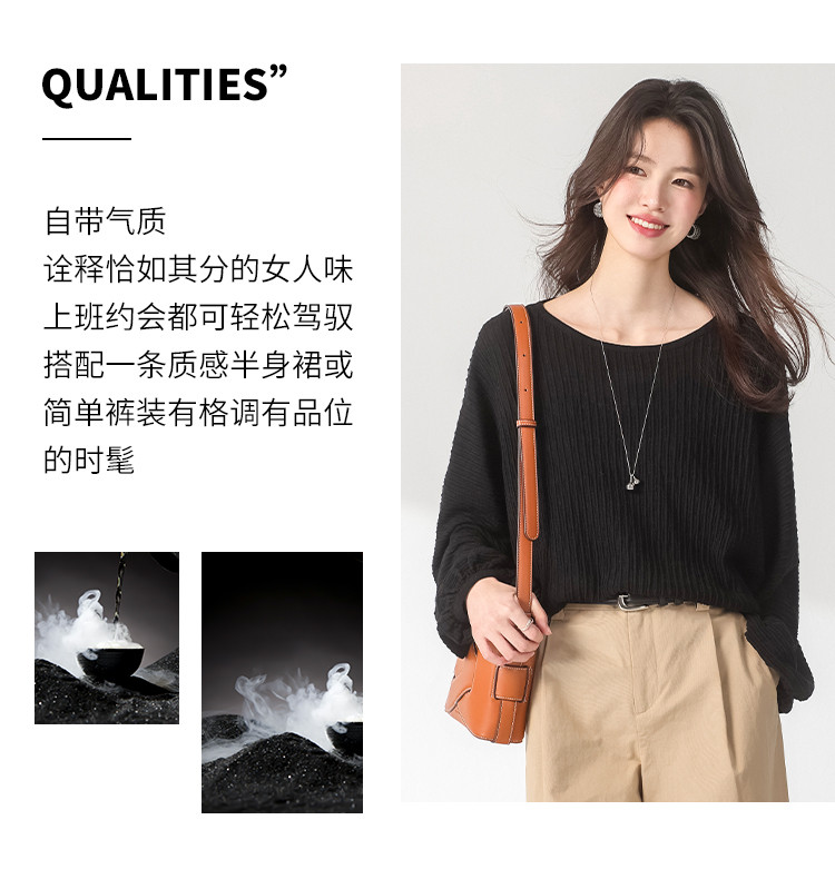 商品名称:圆领含羊毛宽松灯笼袖针织衫女套头纯色薄款外穿毛衣春夏气质T恤 154963