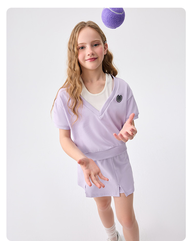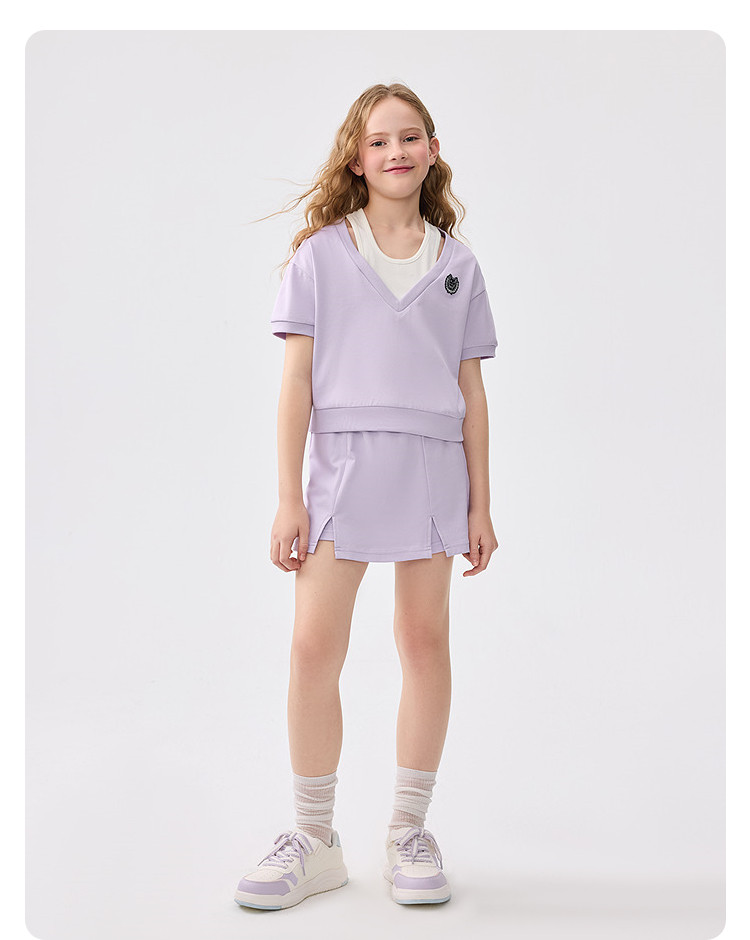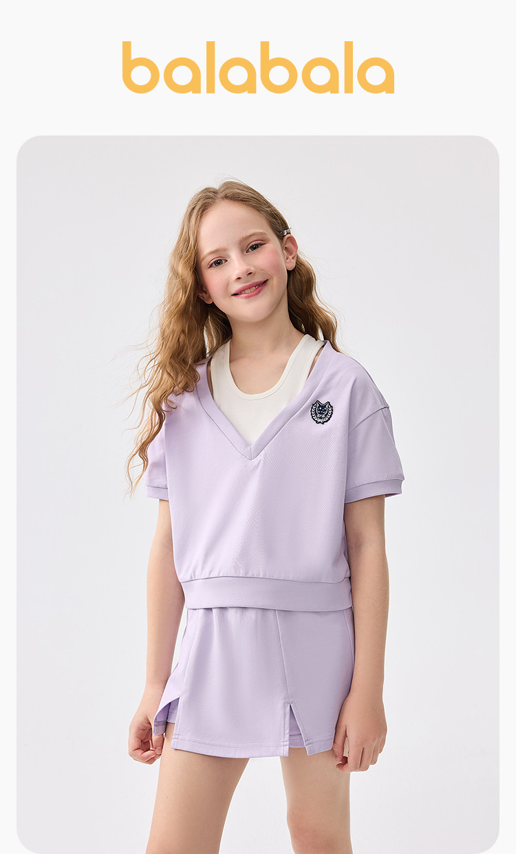 商品名称:吸湿速干女童套装夏季儿童装2025新款夏装中大童两件套学院风 620421