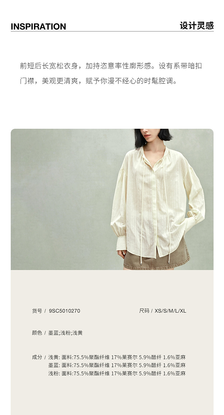 商品名称:限定系列OCH.春装 不对称休闲上衣宽松慵懒中长款衬衫女 420559