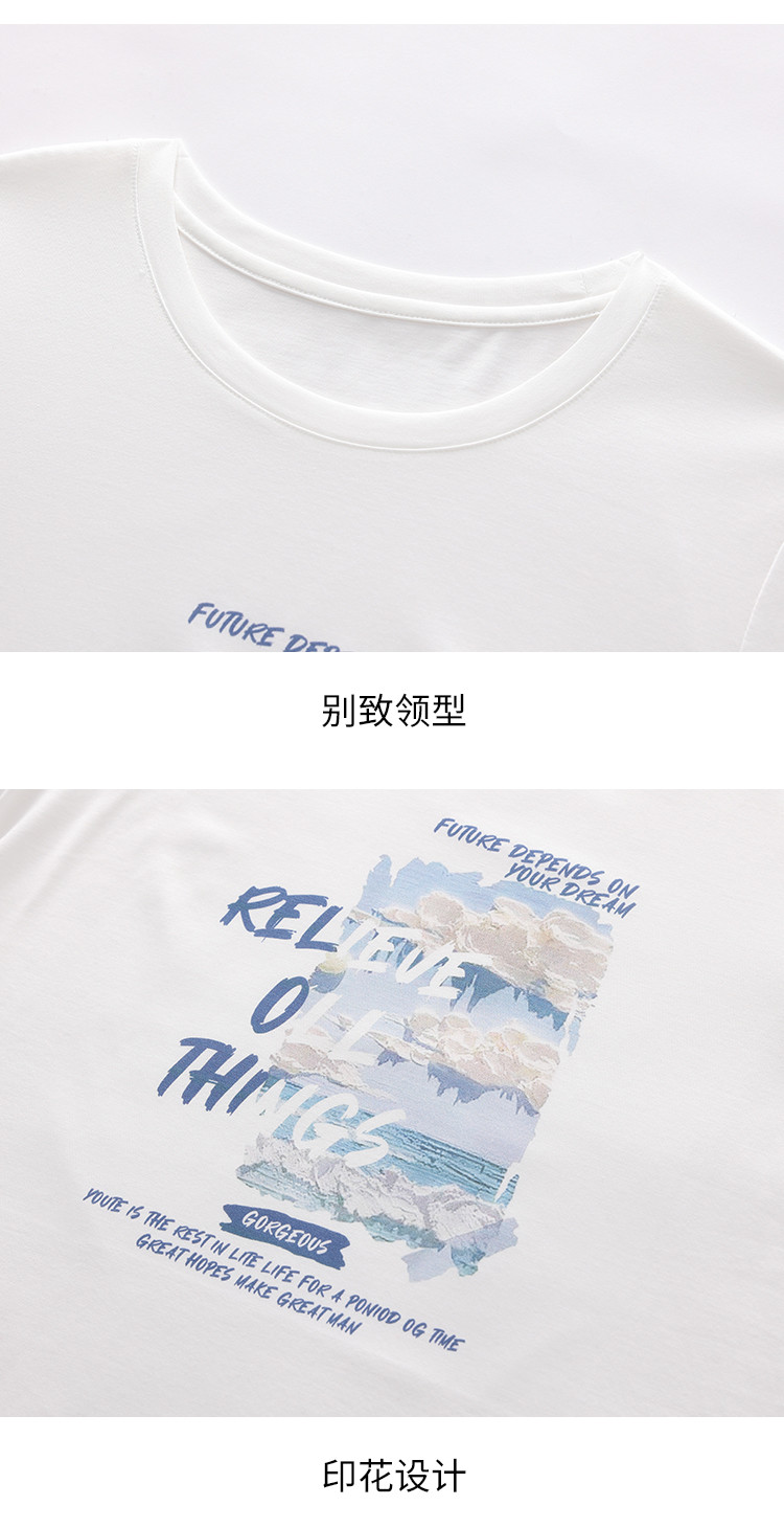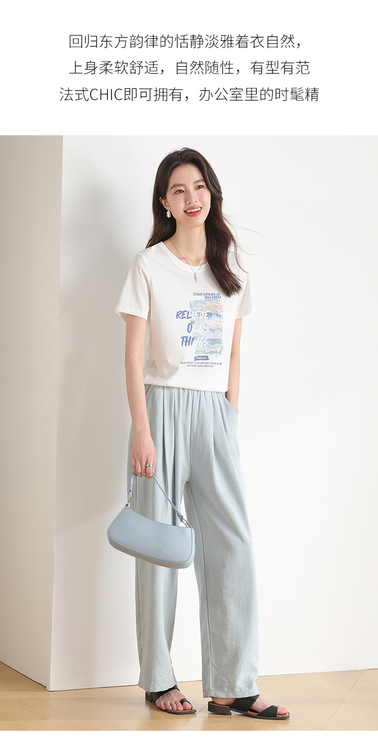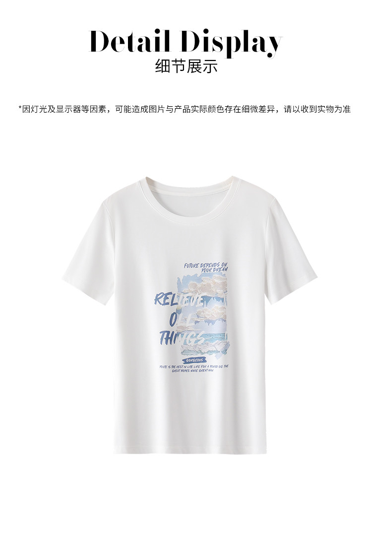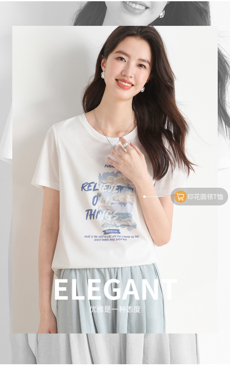 商品名称:【含桑蚕丝】春夏圆领外穿休闲短袖女式T恤印花高级感打底衫 517651