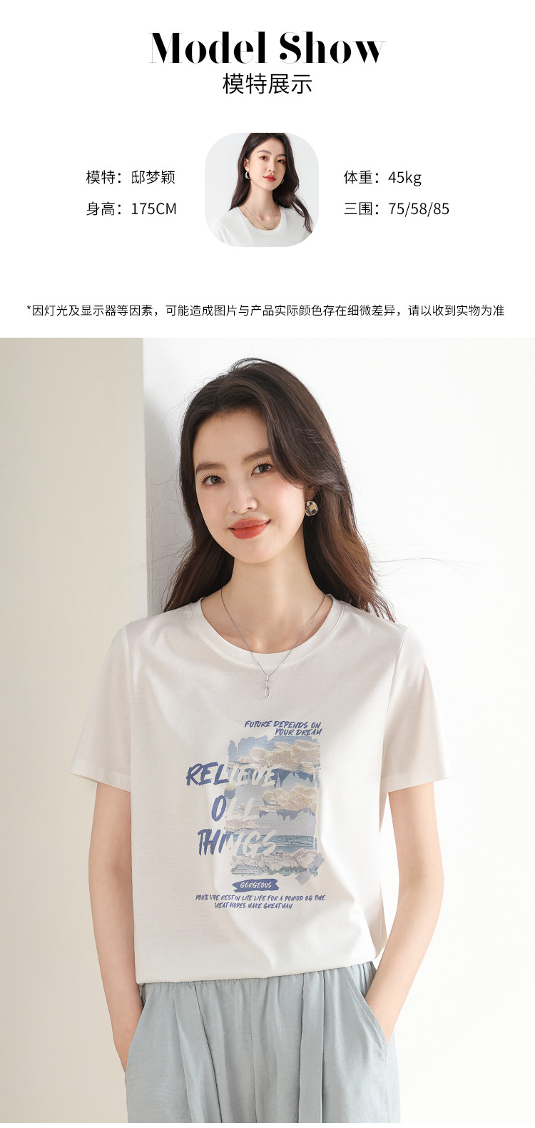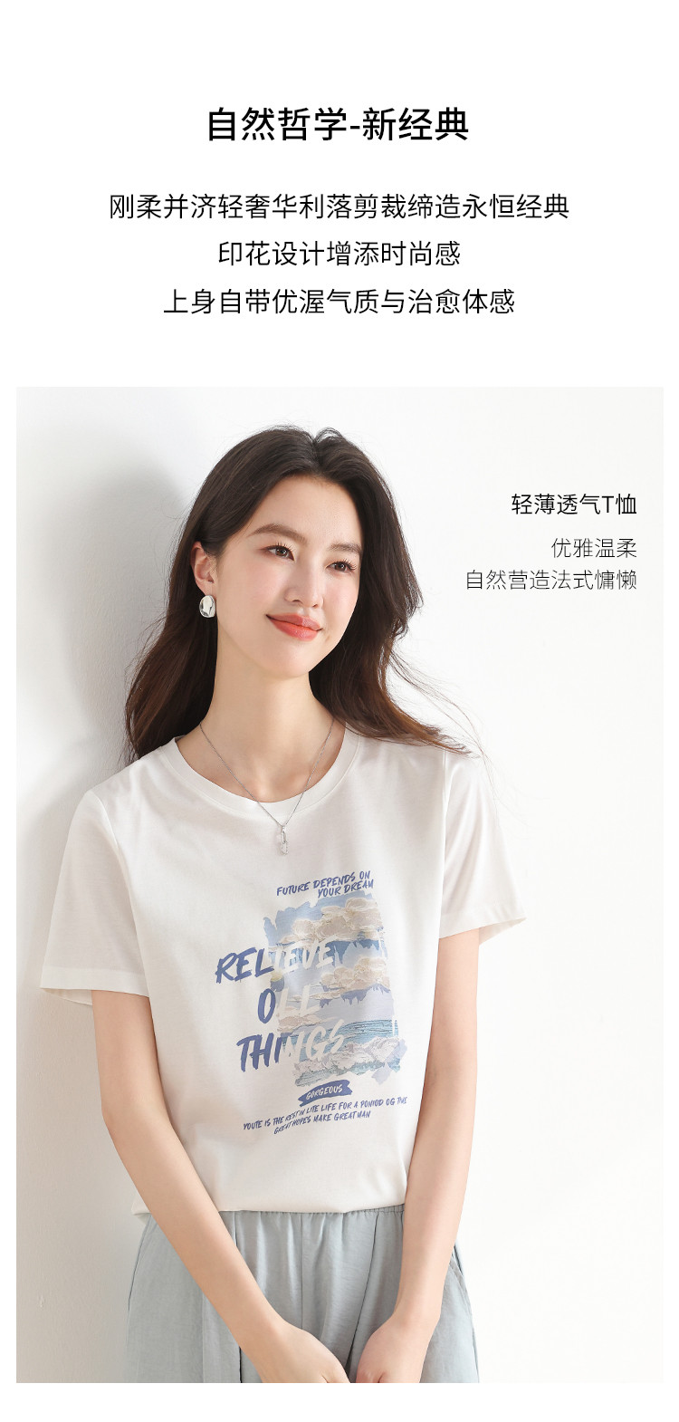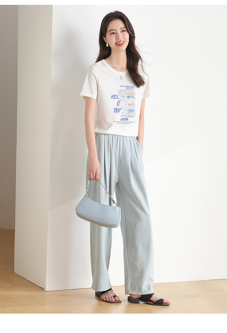 商品名称:【含桑蚕丝】春夏圆领外穿休闲短袖女式T恤印花高级感打底衫 517651
