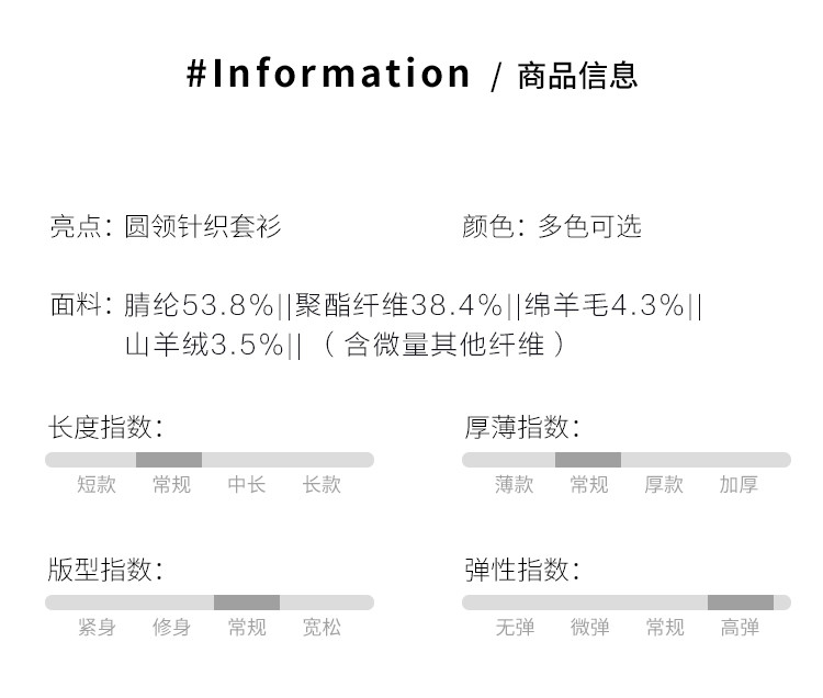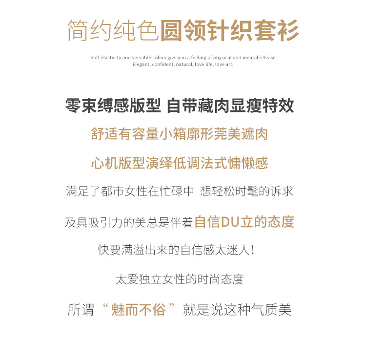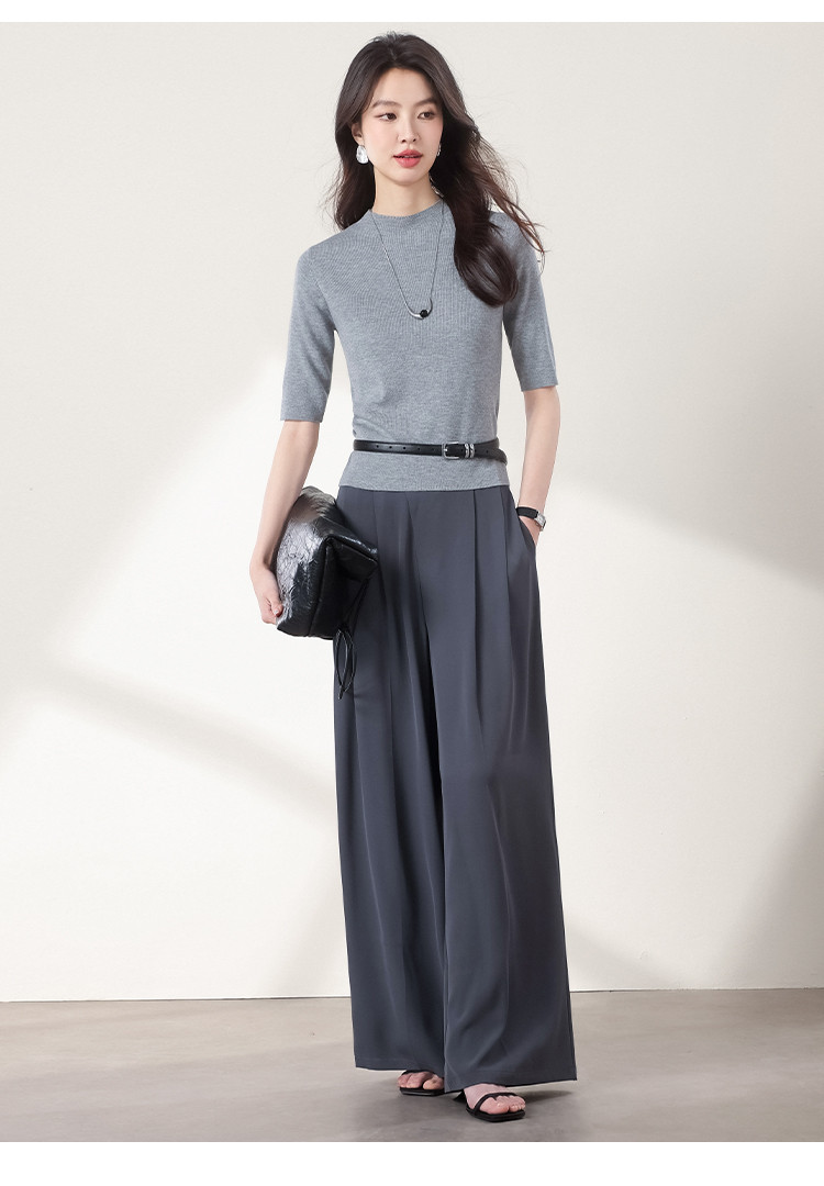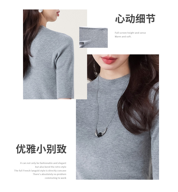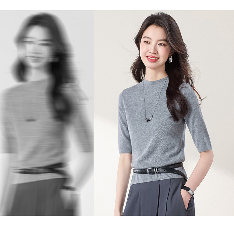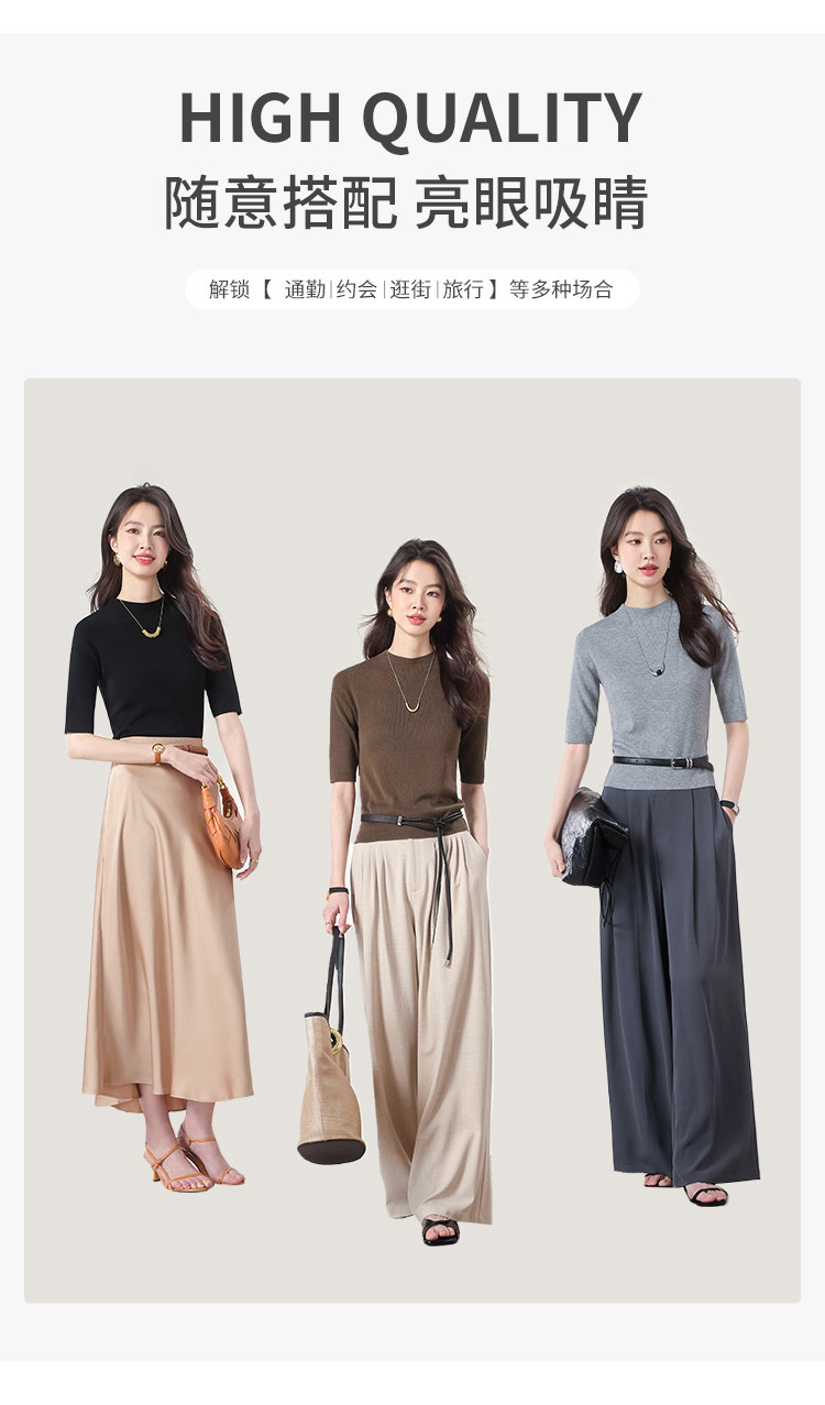 商品名称:含羊毛~圆领纯色针织衫女套头百搭休闲五分袖打底衫春夏简约T恤 116691