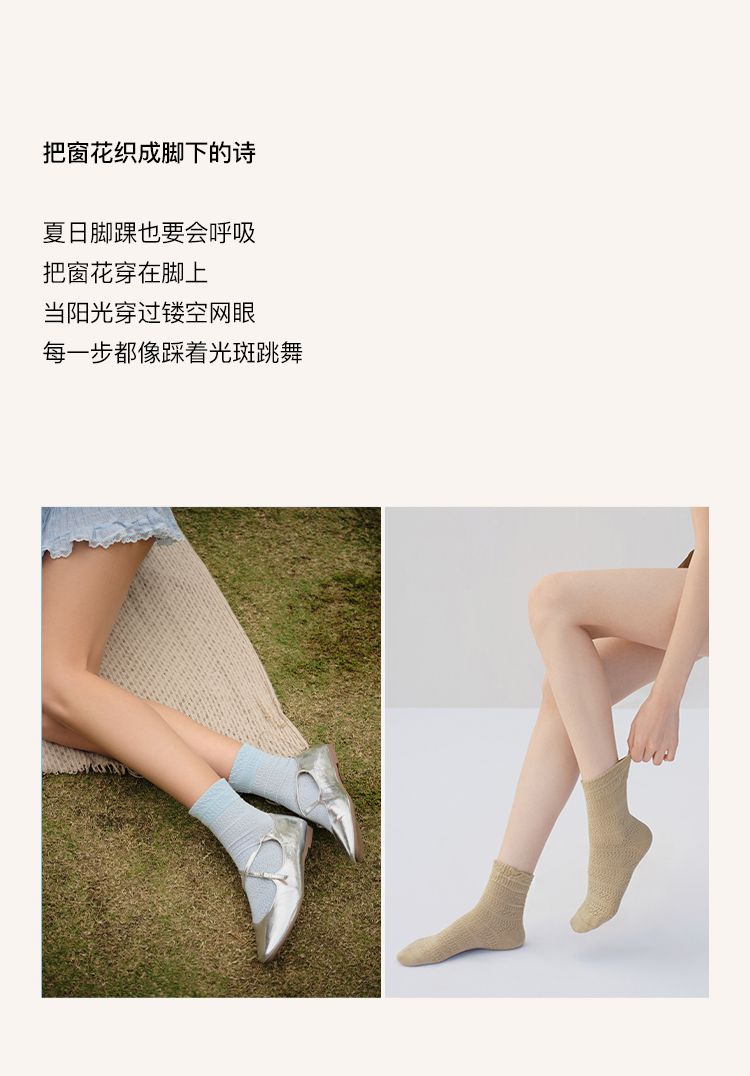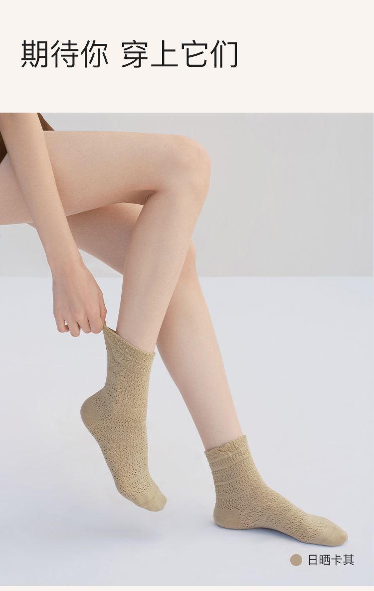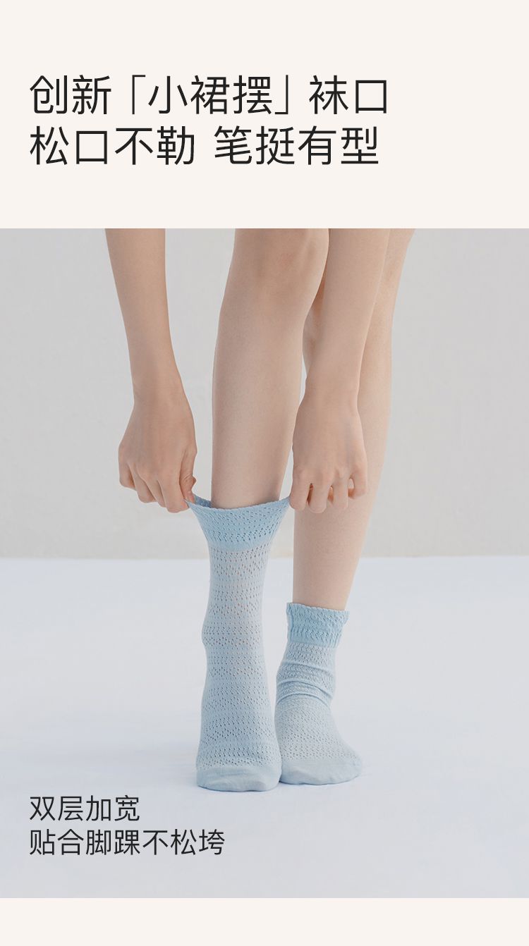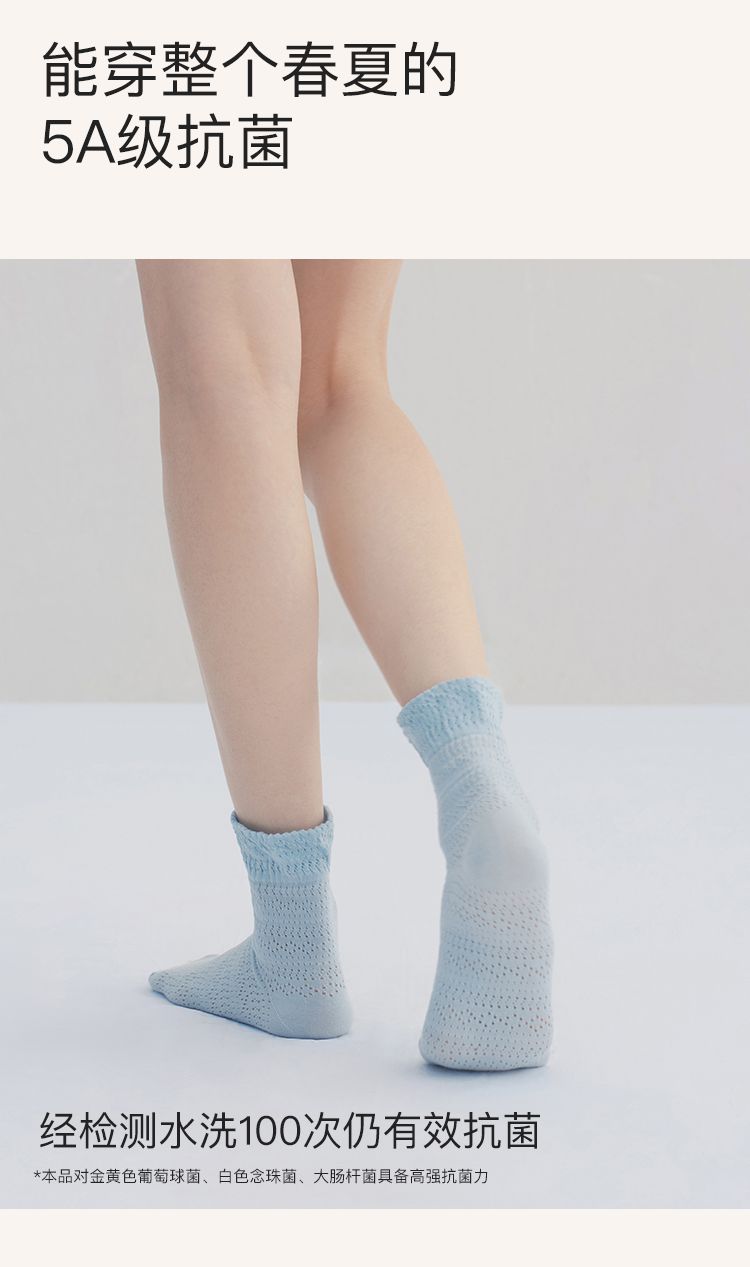 商品名称:【5A抗菌】25新款精梳棉镂空女士中筒袜夏季薄款2双装 041600