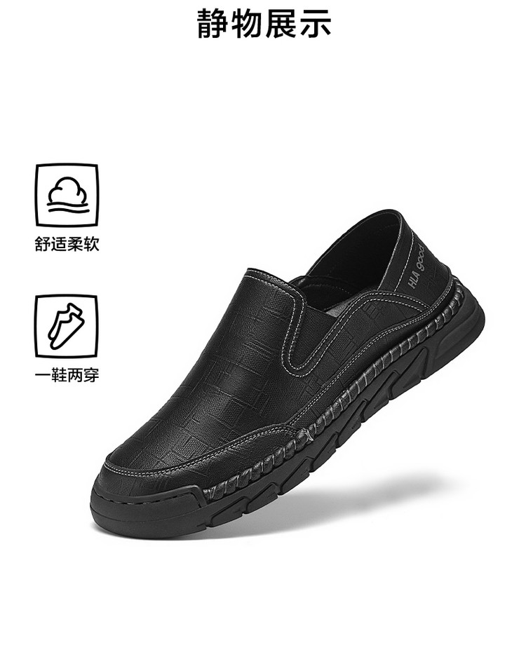商品名称:男鞋简约复古风套脚休闲皮鞋2025新款百搭男士一脚蹬休闲鞋 639375