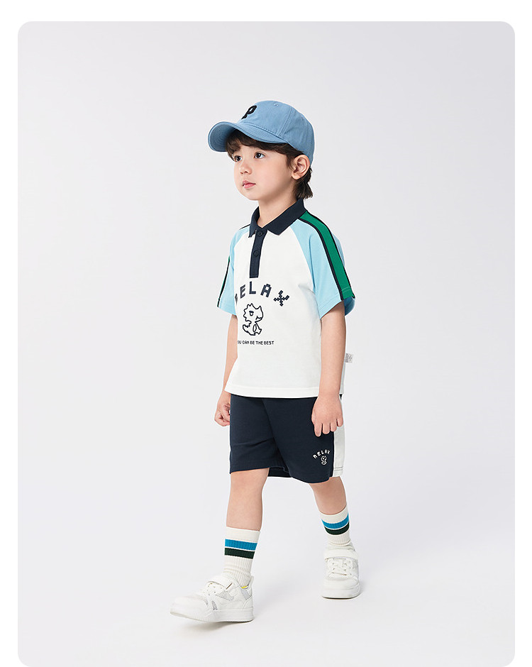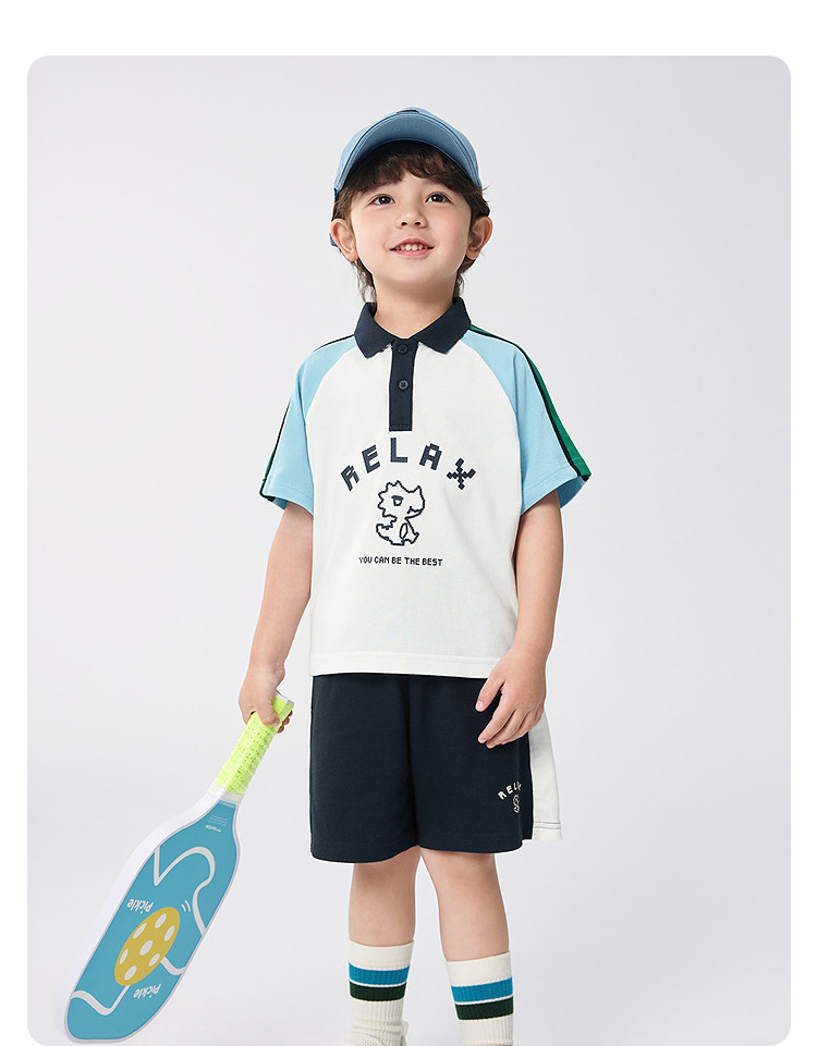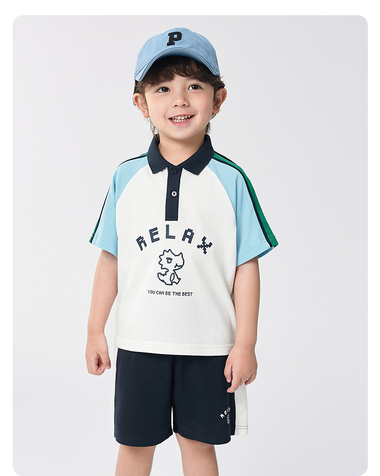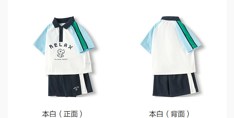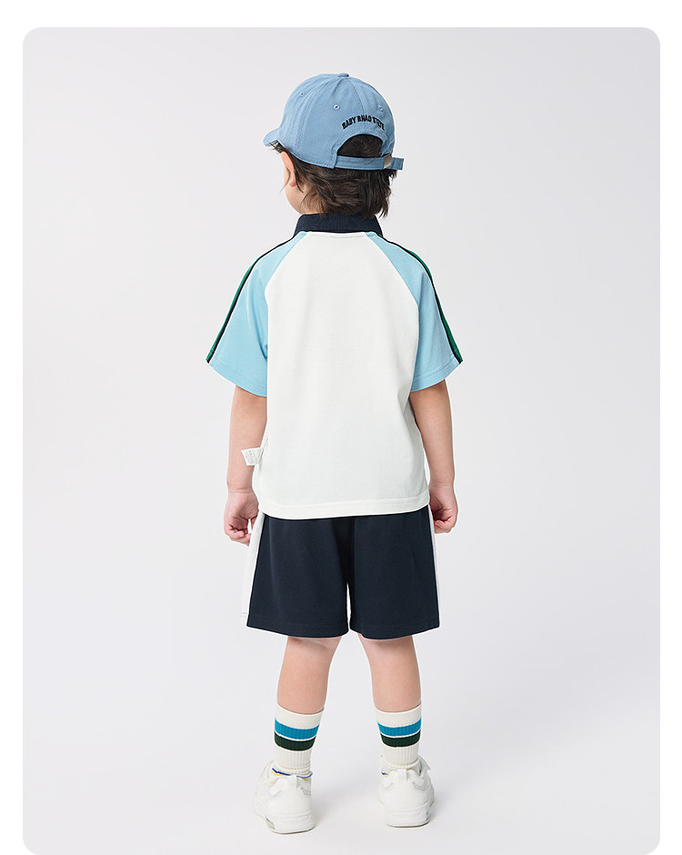 商品名称:男童儿童短袖套装吸湿速干两件套学院风夏装2025新款撞色潮流 740165