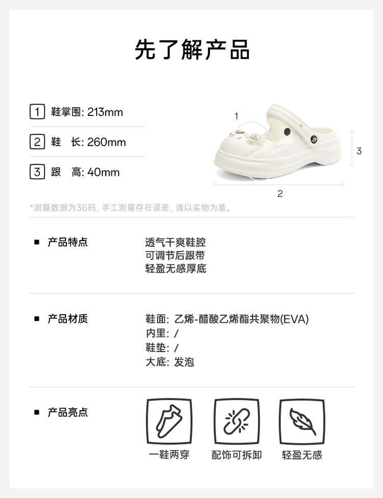 商品名称:洞洞鞋厚底透气凉鞋女夏外穿女士沙滩鞋个性DIY洞洞鞋 947151
