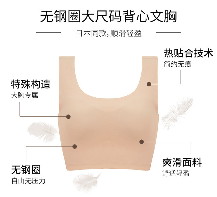 商品名称:大码大胸显小花生插片薄款背心式无钢圈文胸内衣女 628378