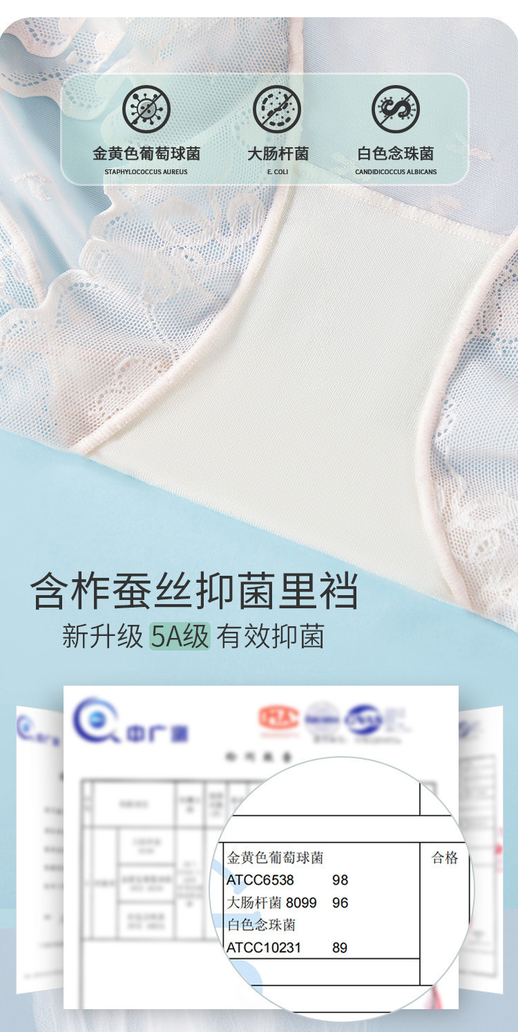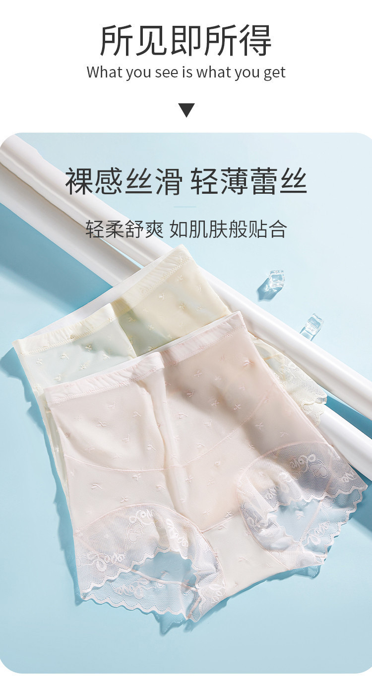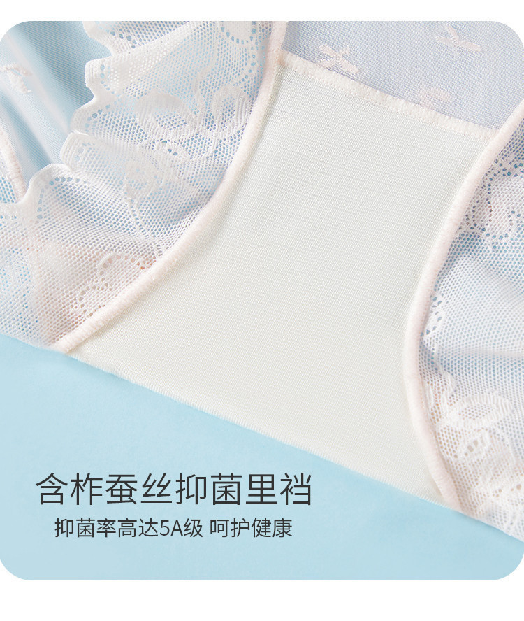 商品名称:【含桑蚕丝10A抑菌裆】高弹透气中高腰提花蕾丝女士内短裤衩女 795211