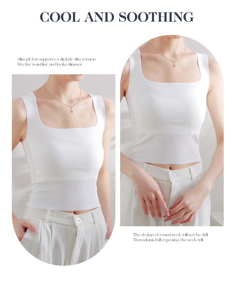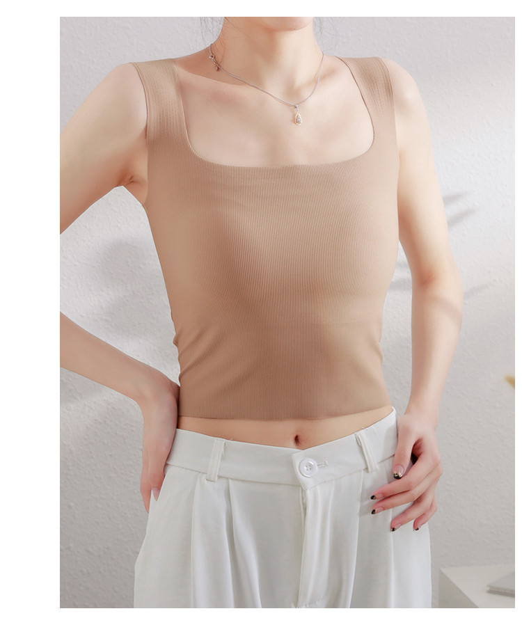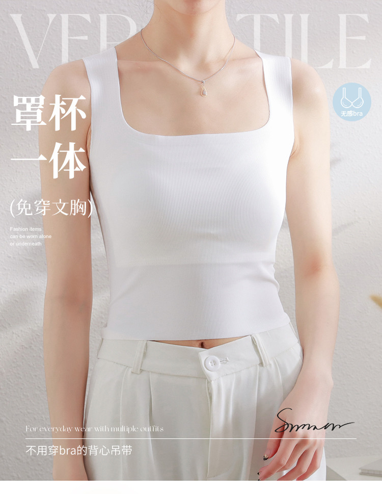 商品名称:【带胸垫内衣】秋季女士百搭吊带背心优质无痕细螺纹面膜舒适吊带 995275