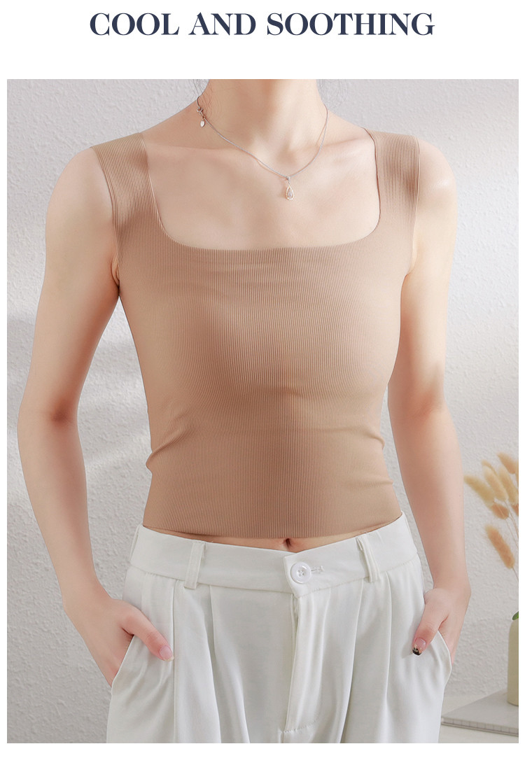 【带胸垫内衣】秋季女士百搭吊带背心优质无痕细螺纹面膜舒适吊带 995275
