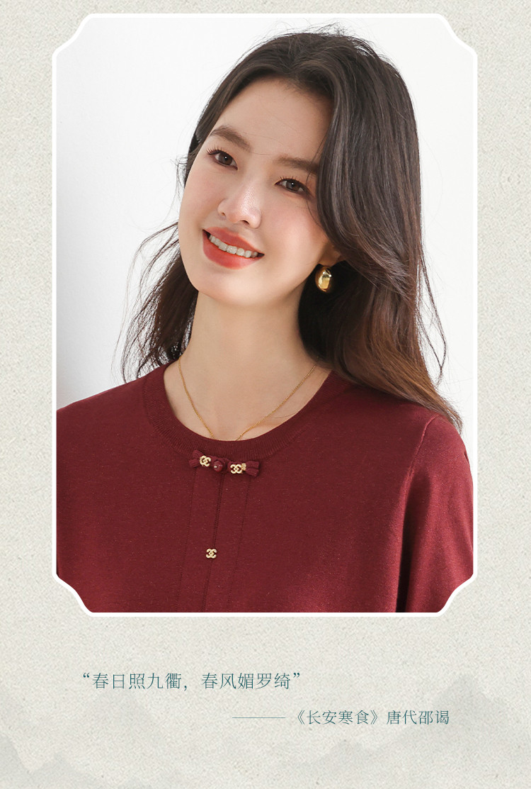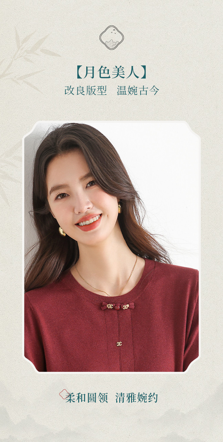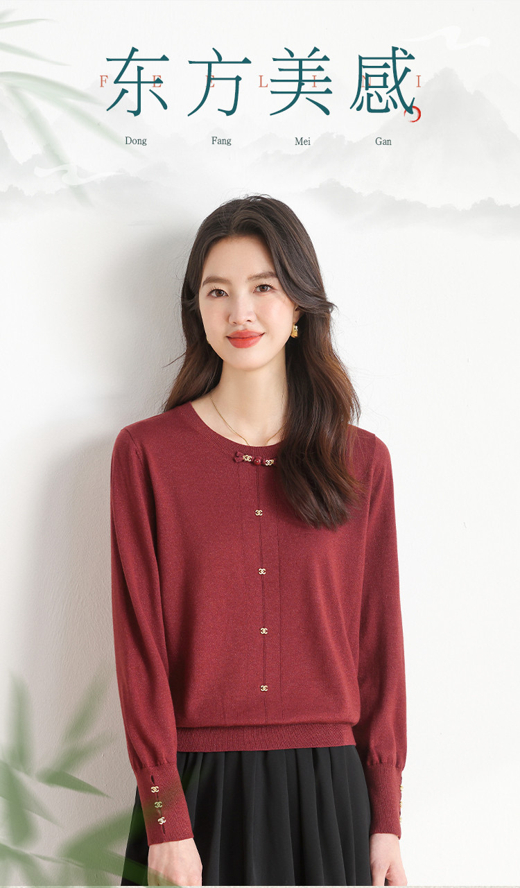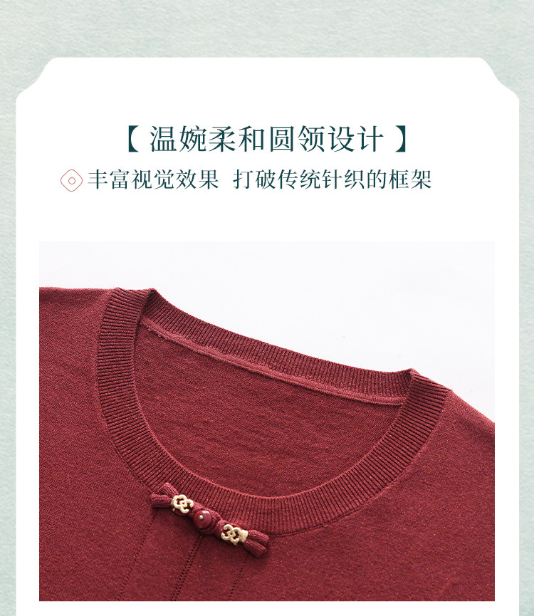 商品名称:【新中式】圆领钉珠国风针织衫女套头纯色含桑蚕丝春装上衣 325139