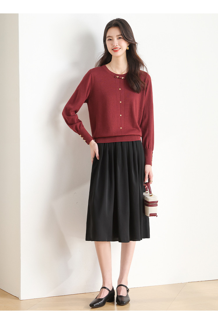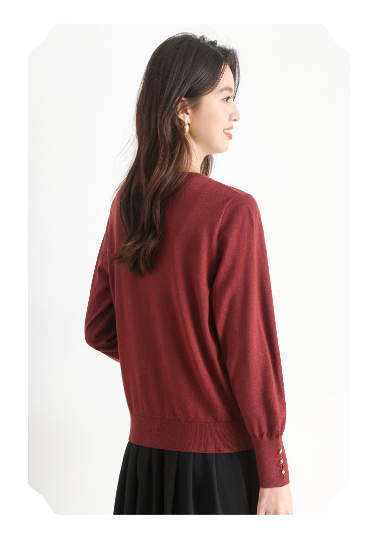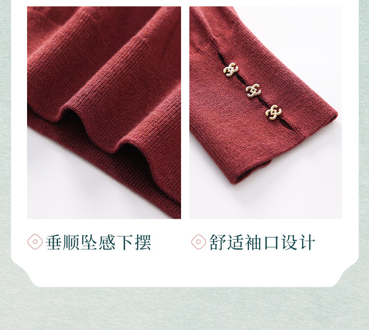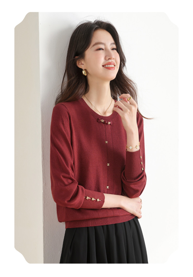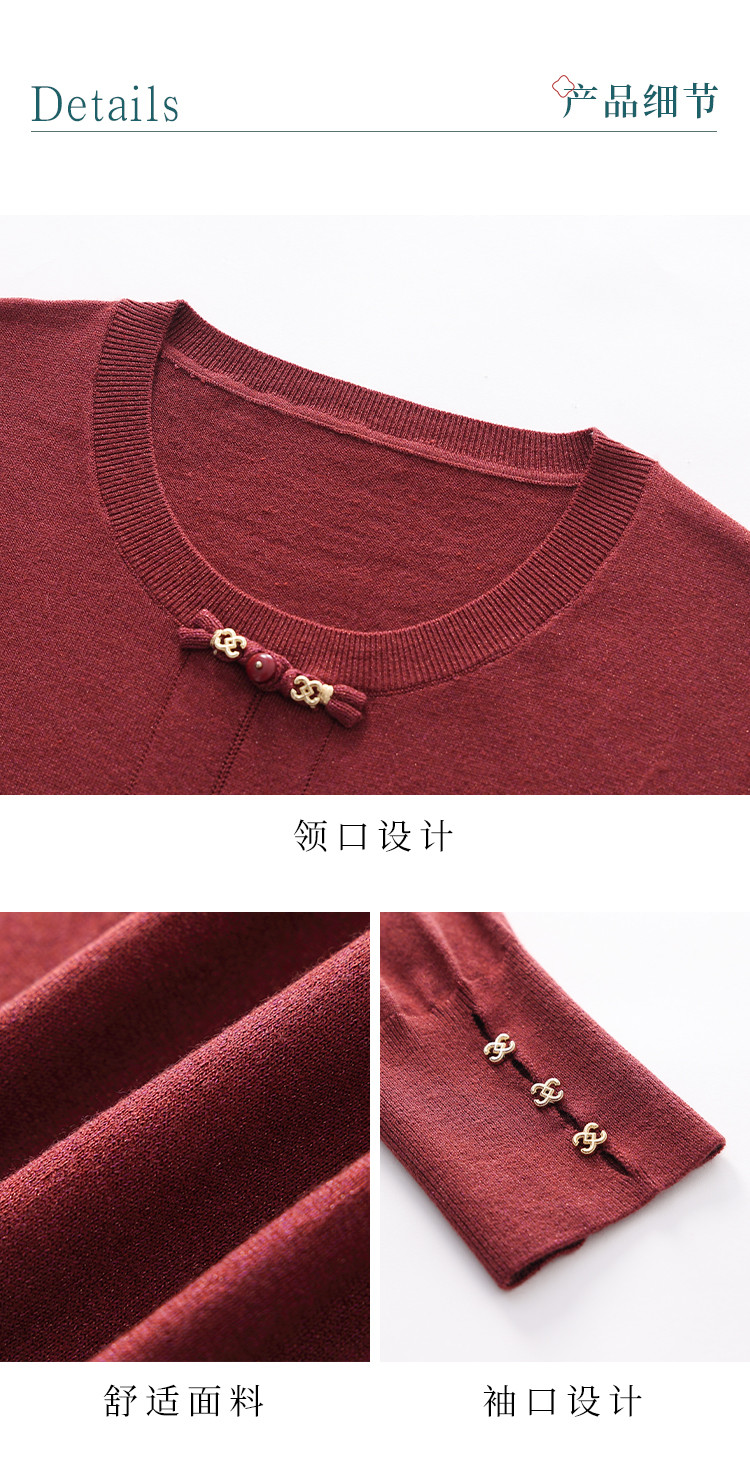 商品名称:【新中式】圆领钉珠国风针织衫女套头纯色含桑蚕丝春装上衣 325139