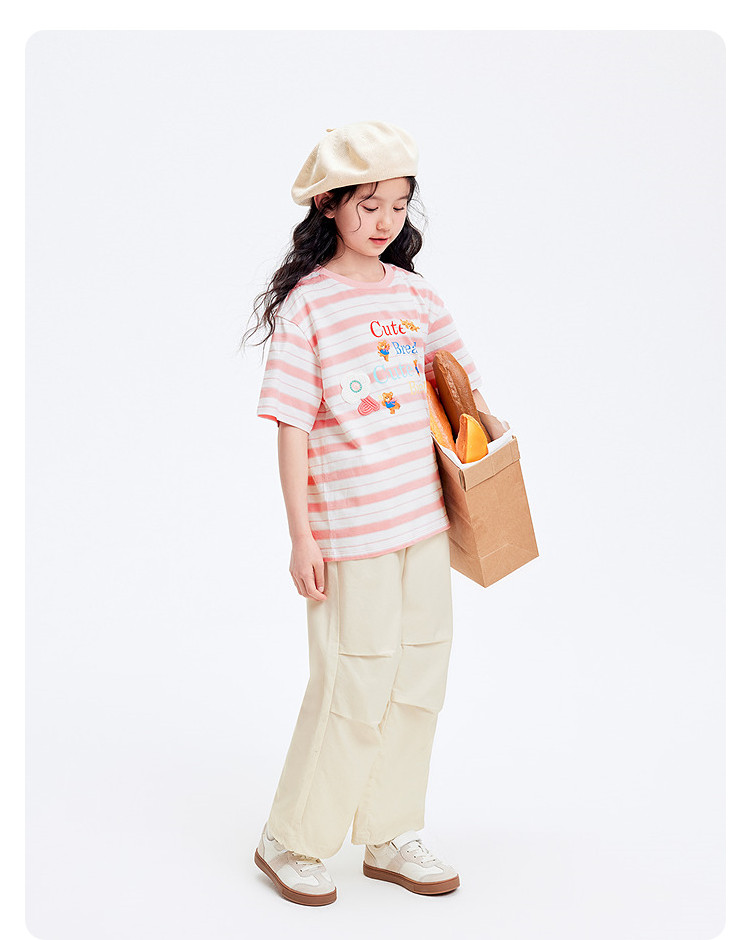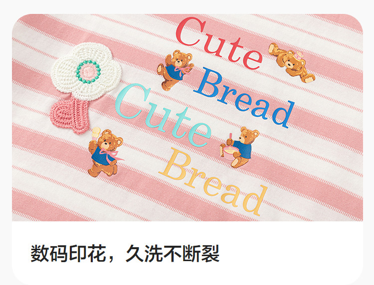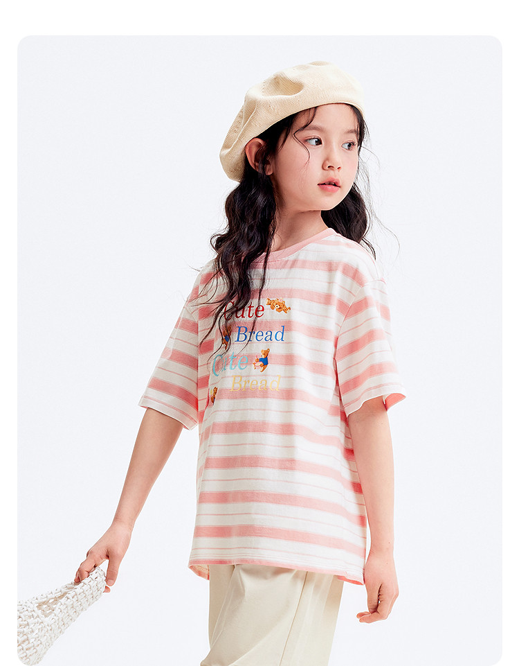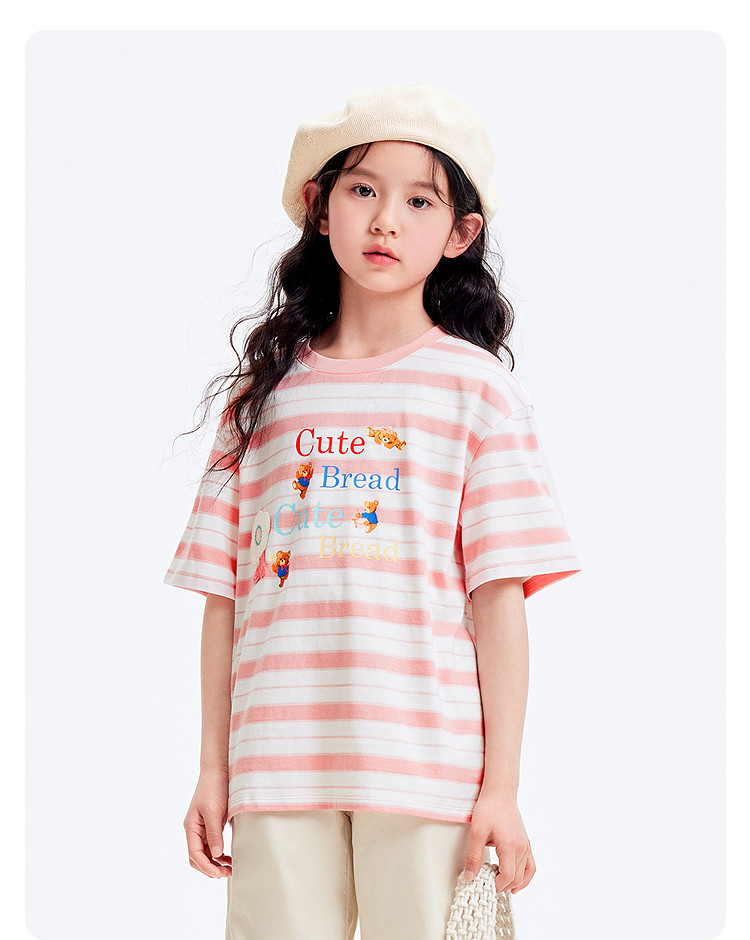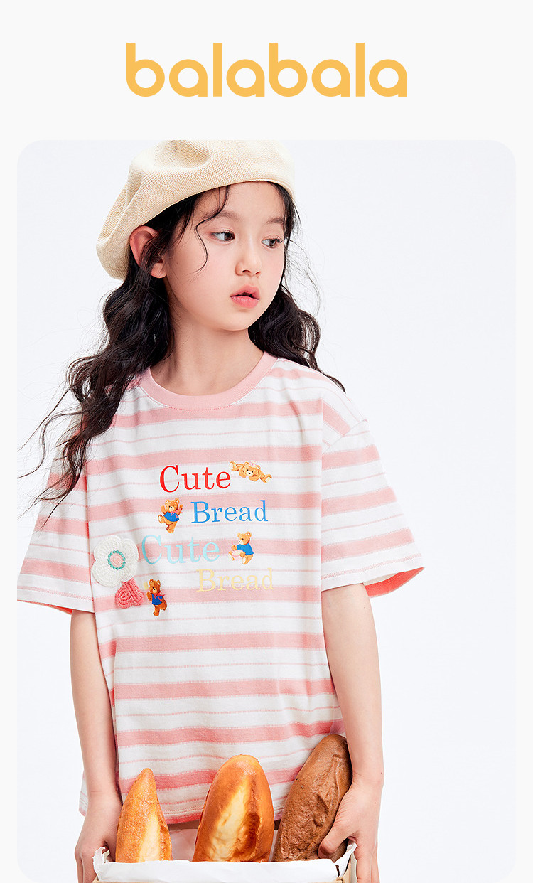 巴拉巴拉童装儿童短袖女童t恤夏装大童纯棉条纹上衣甜美数码印花 358277