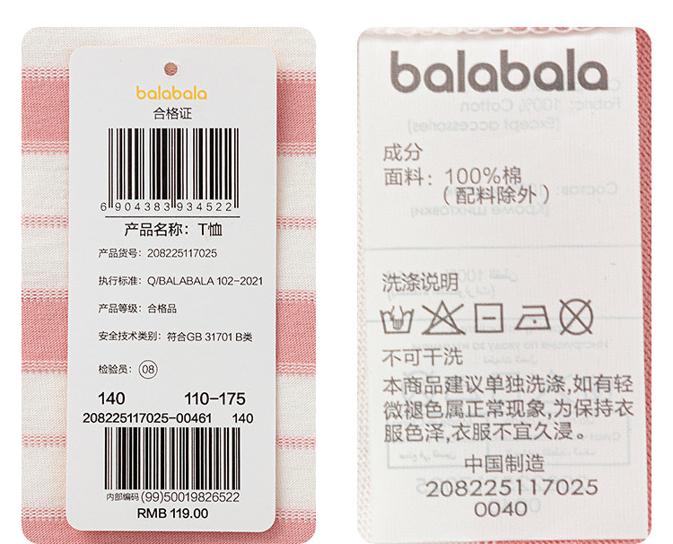 商品名称:巴拉巴拉童装儿童短袖女童t恤夏装大童纯棉条纹上衣甜美数码印花 358277