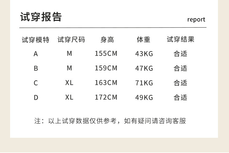 | 尺码 | 肩宽(cm) | 袖长(cm) | 衣长(cm) | 身高(cm) | 腰围(cm) | 裤长(cm) | 体重(kg) | 臀围(cm) | 胸围(cm) | 号型 |