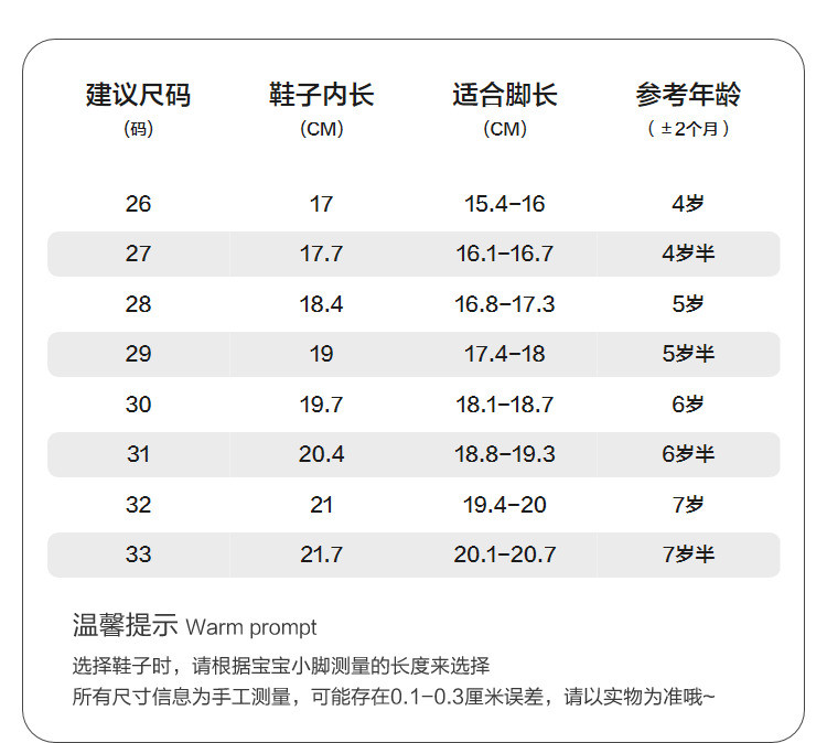鞋内长(mm)
