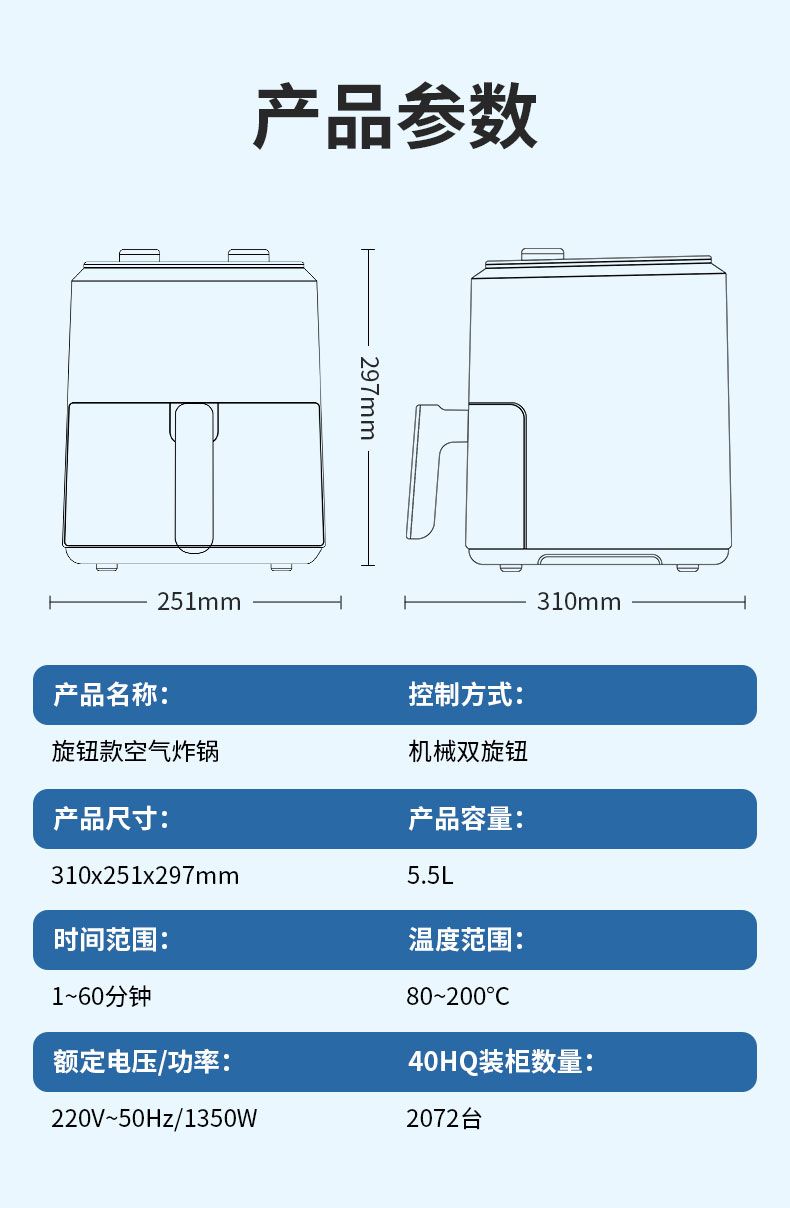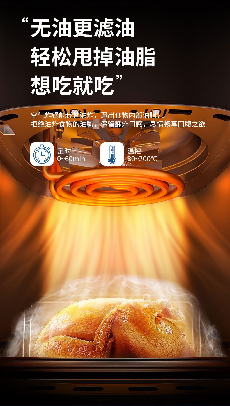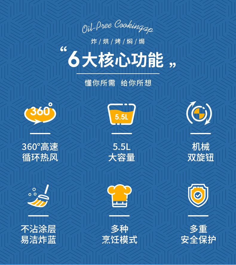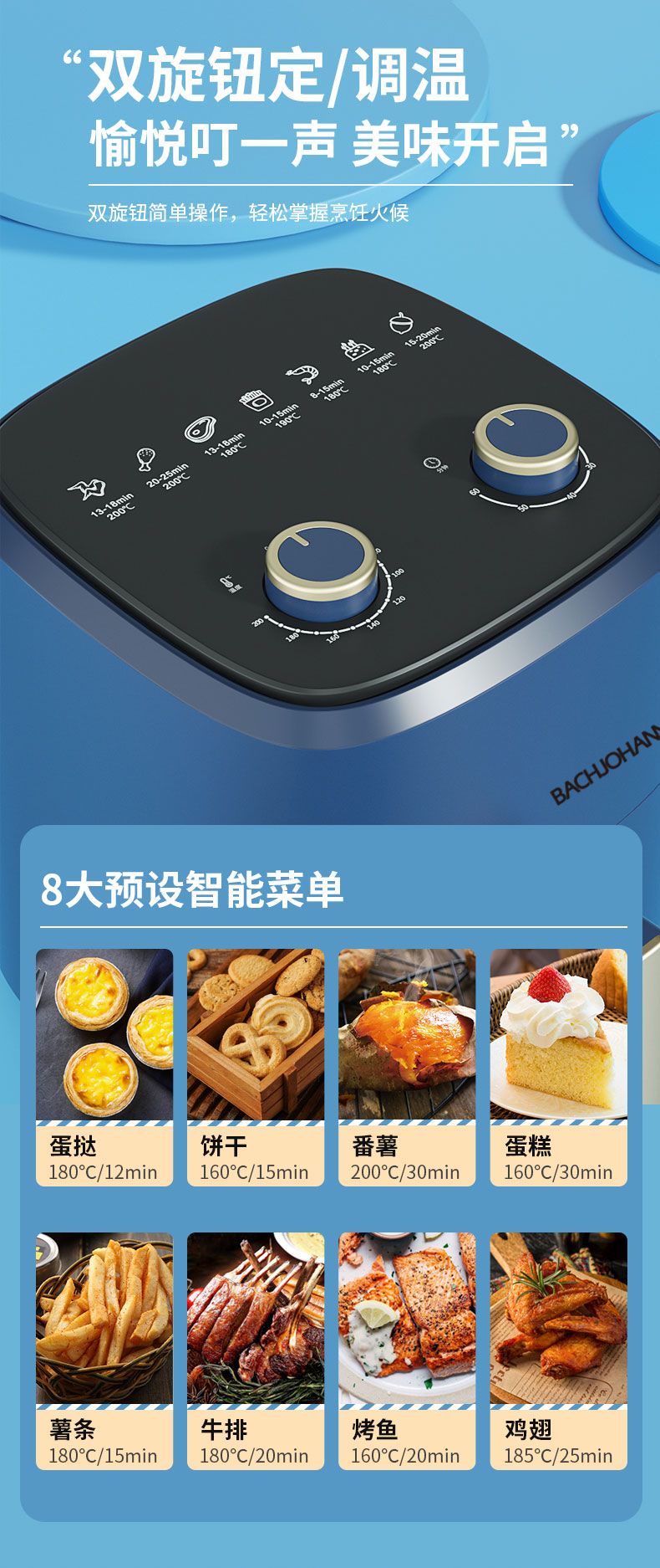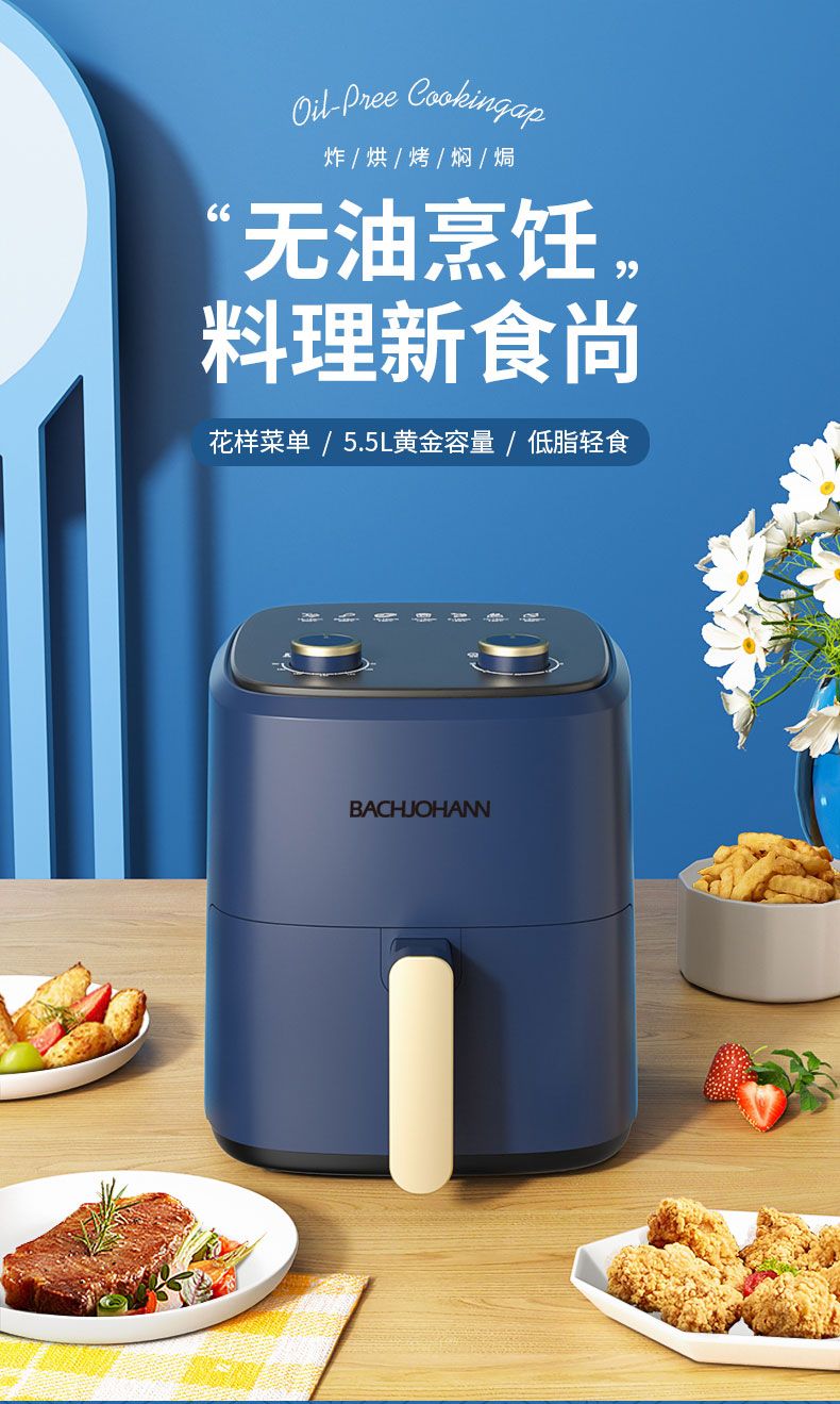 商品名称:BACHJOHANN德国巴赫 Y-5060S空气炸锅家用全自动智能无油电炸锅5.5L大容量多功能 Y-5060不可视窗口