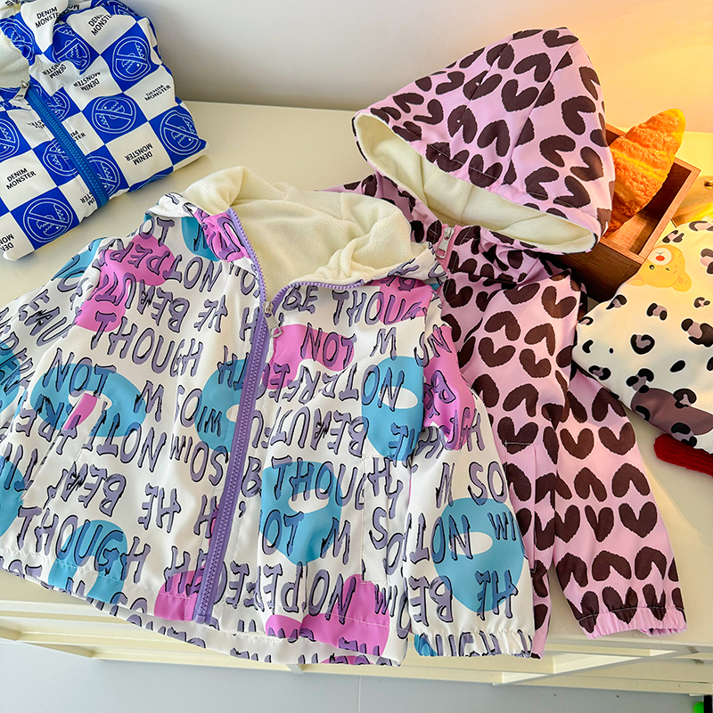 哈萌熊童装儿童秋冬新款加绒冲锋衣外套男童连帽加厚上衣女童冬季衣服中大童冬款帽衫