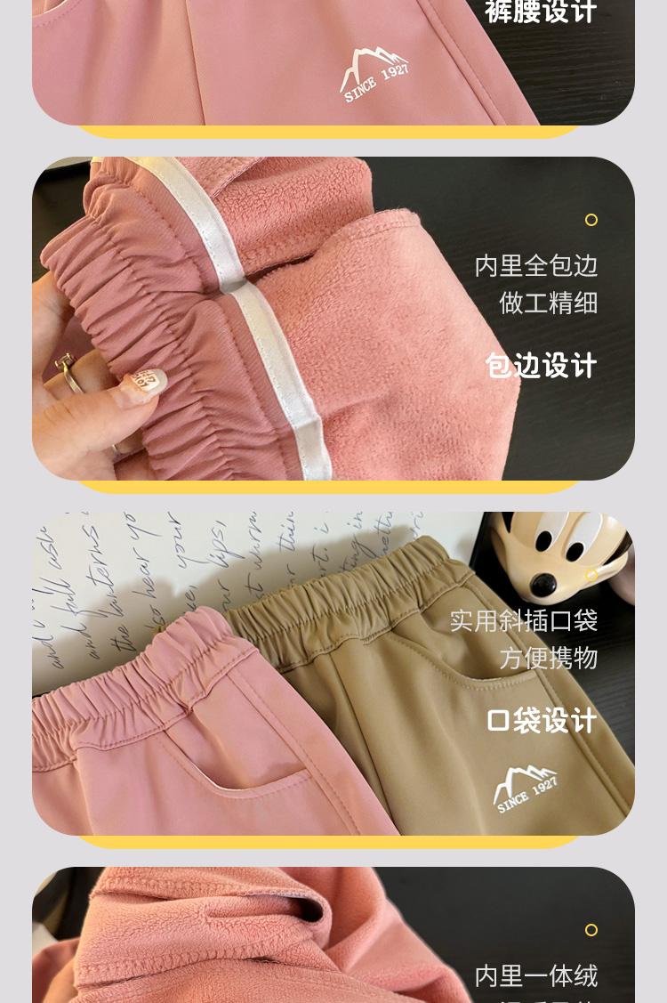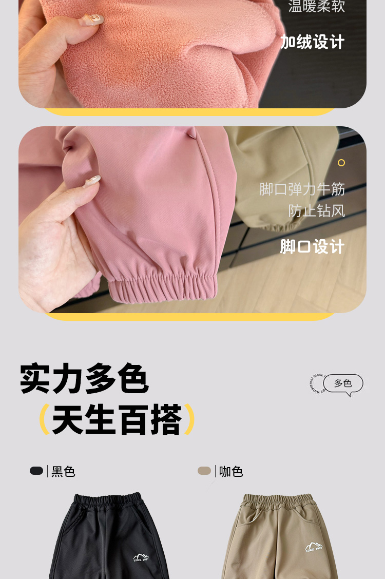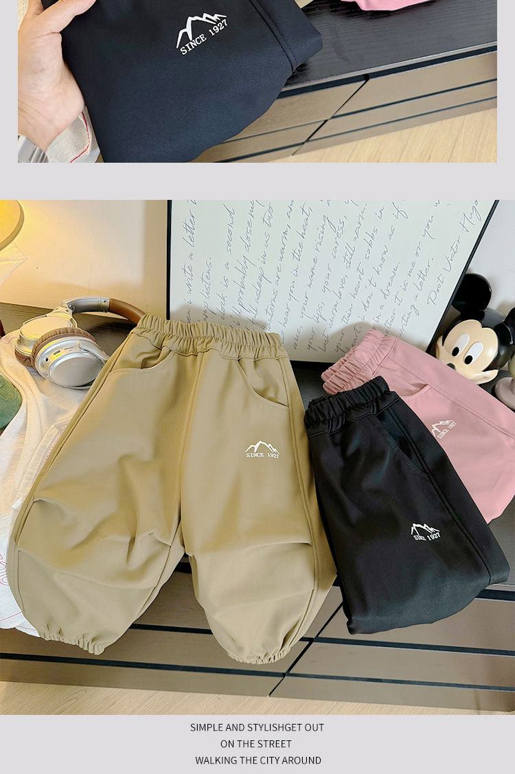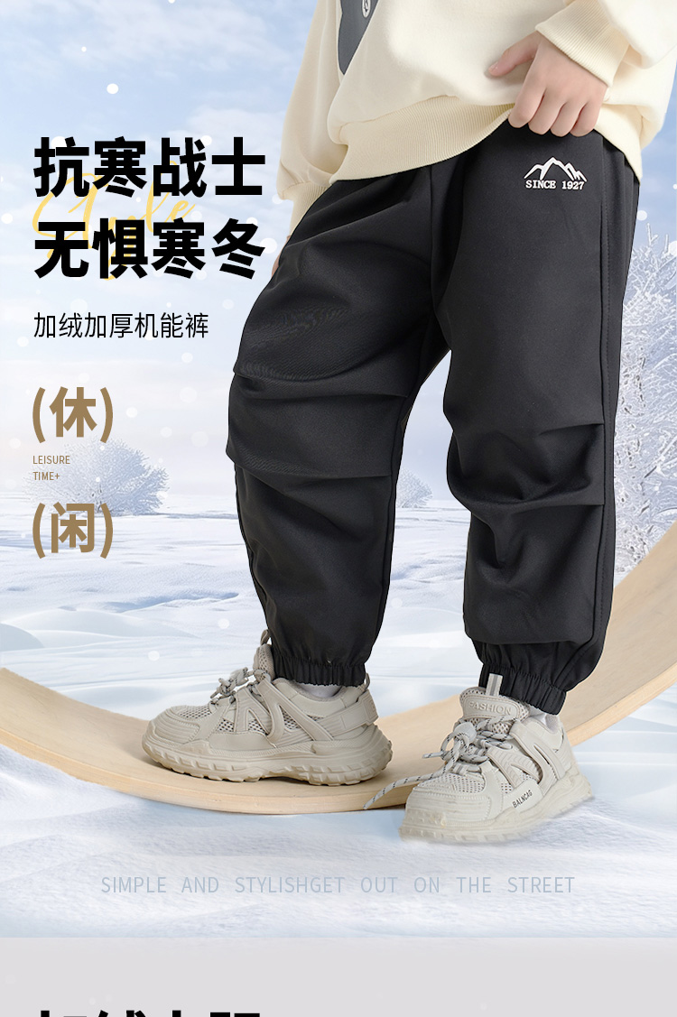 商品名称:哈萌熊童装儿童冬季山系加绒休闲裤男童冬款裤子简约女童加厚长裤百搭卫裤
