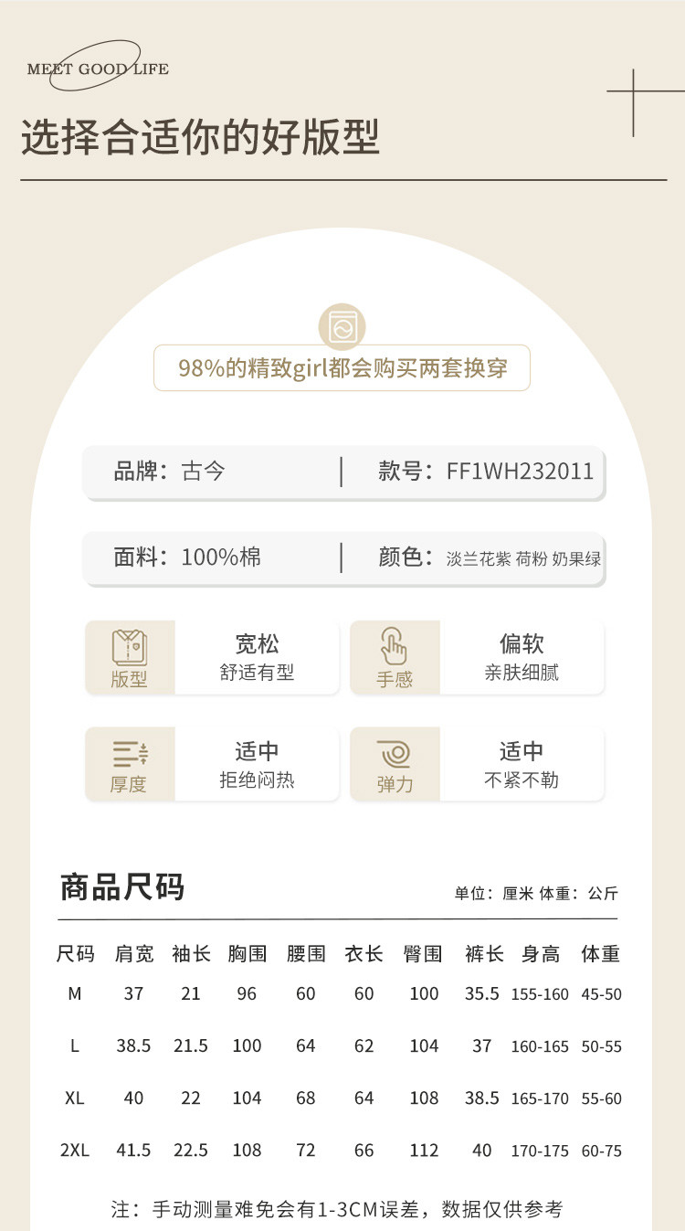 | 尺码 | 肩宽(cm) | 袖长(cm) | 衣长(cm) | 身高(cm) | 腰围(cm) | 裤长(cm) | 体重(kg) | 臀围(cm) | 胸围(cm) | 号型 |