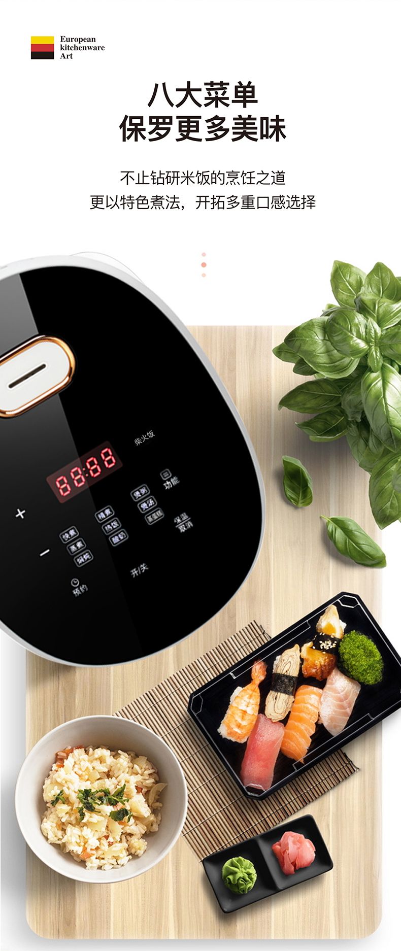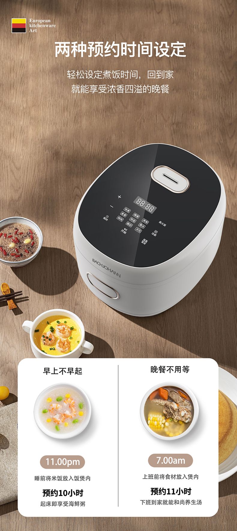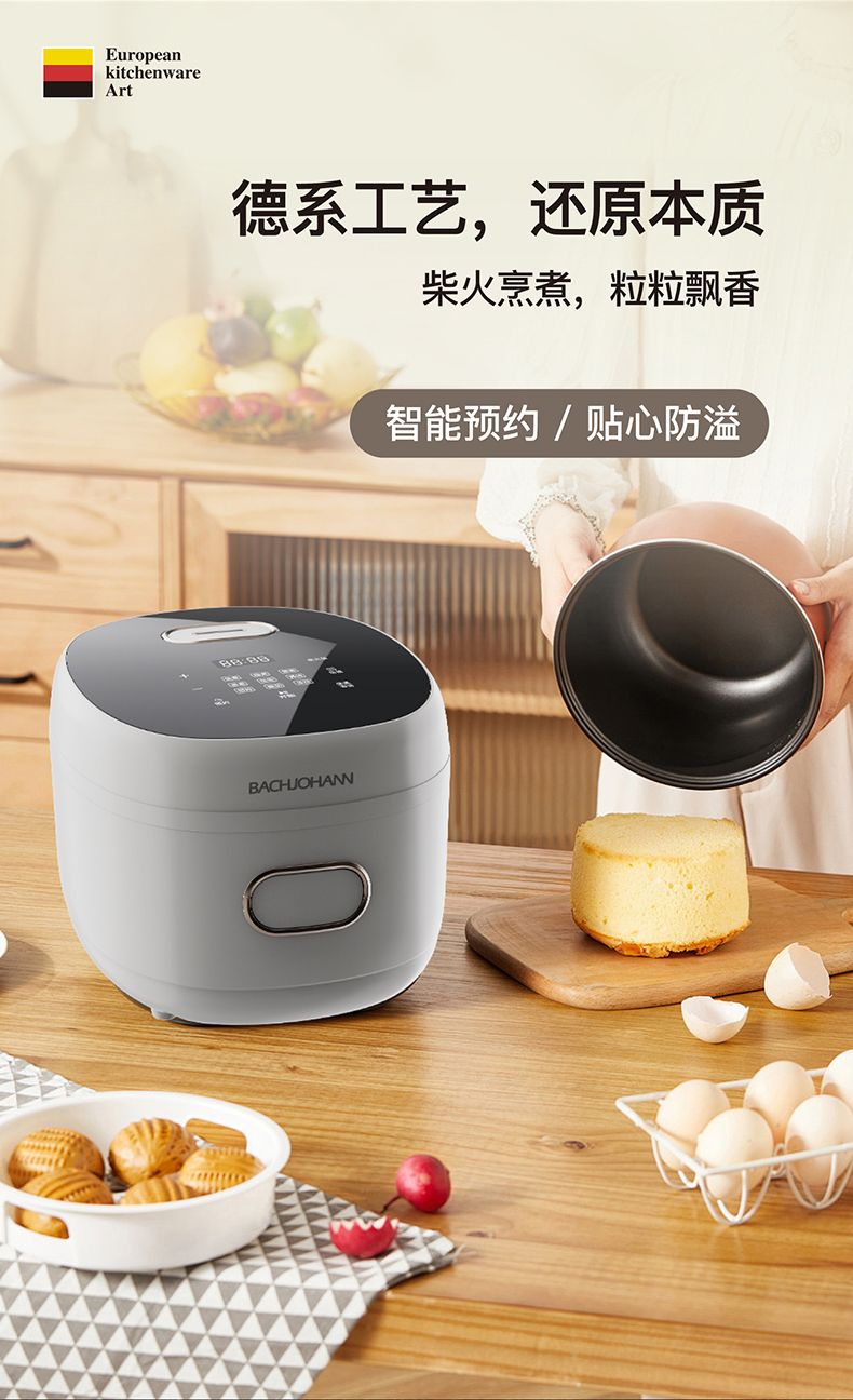商品名称:巴赫约翰(bach johann)3L家用2-6人多功能电饭煲不粘厚釜内胆大火力柴火饭智能预约8大菜单 智能预约柴火饭