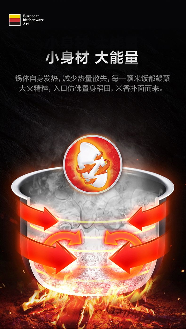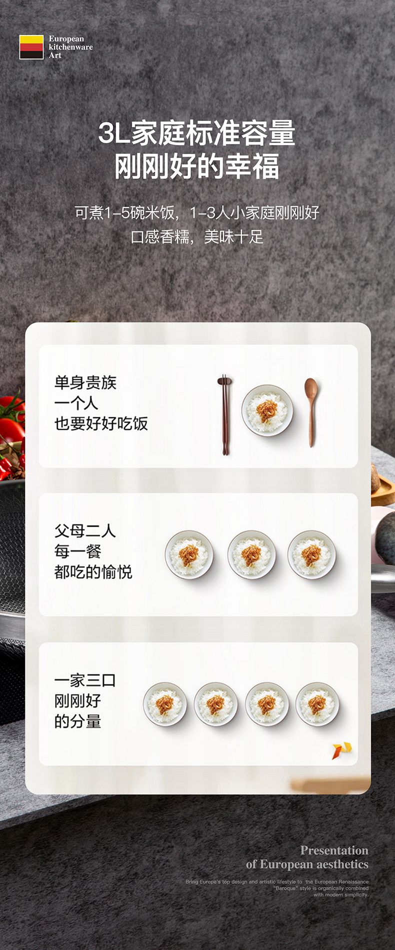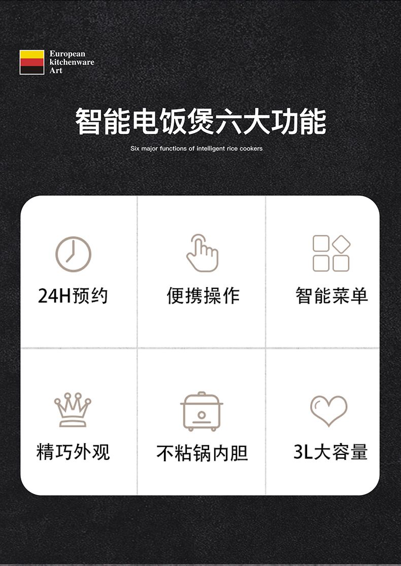 商品名称:巴赫约翰(bach johann)3L家用2-6人多功能电饭煲不粘厚釜内胆大火力柴火饭智能预约8大菜单 智能预约柴火饭