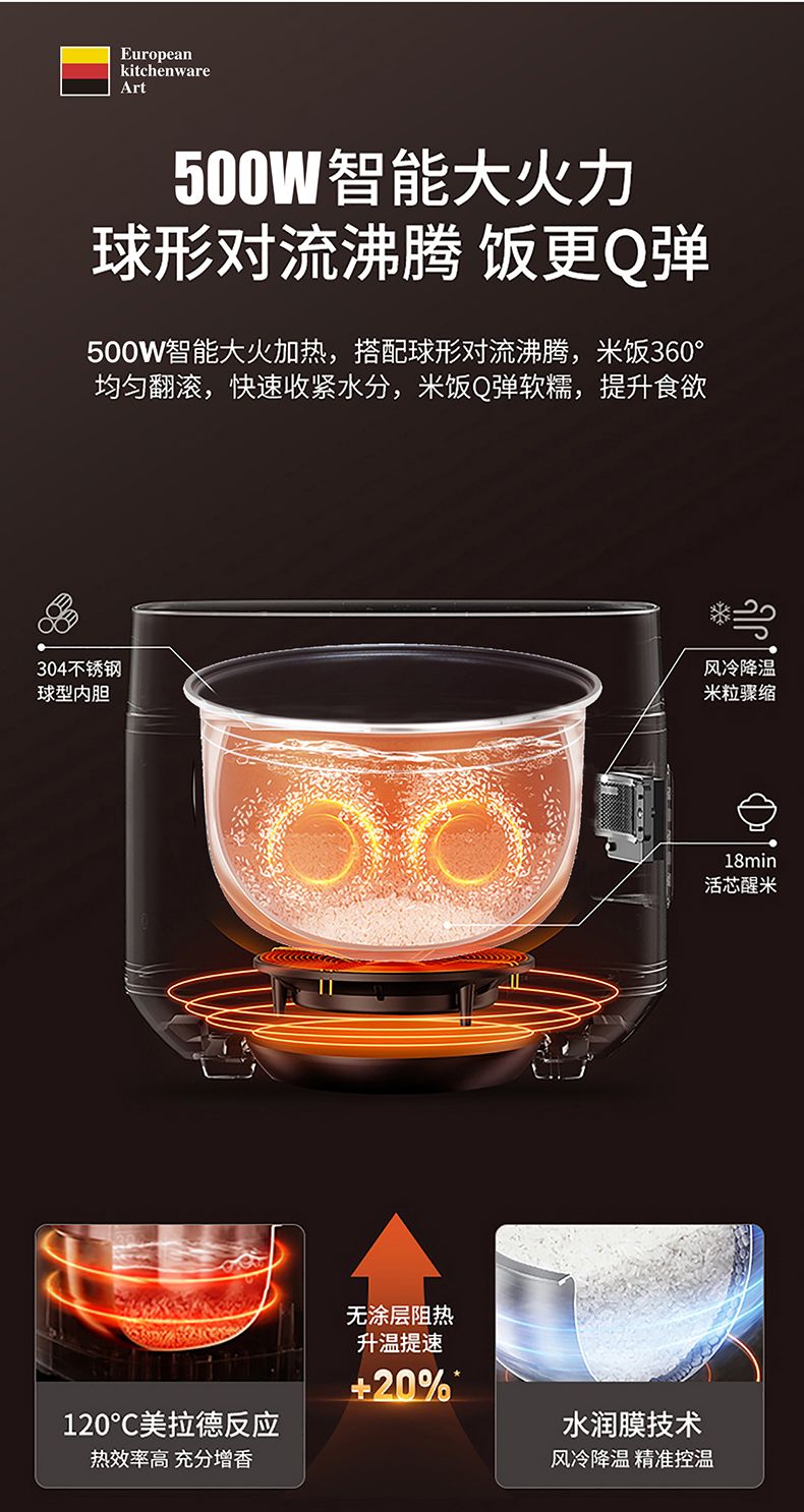 巴赫约翰(bach johann)3L家用2-6人多功能电饭煲不粘厚釜内胆大火力柴火饭智能预约8大菜单 智能预约柴火饭