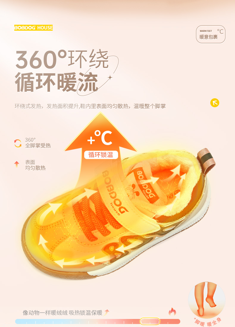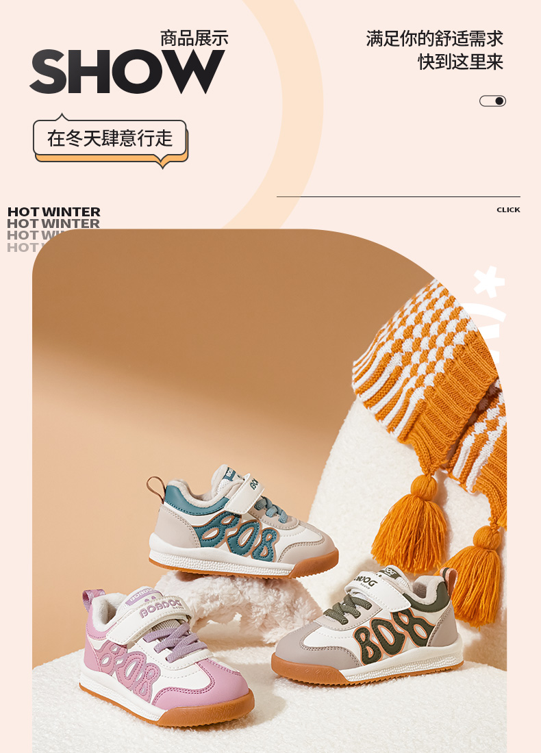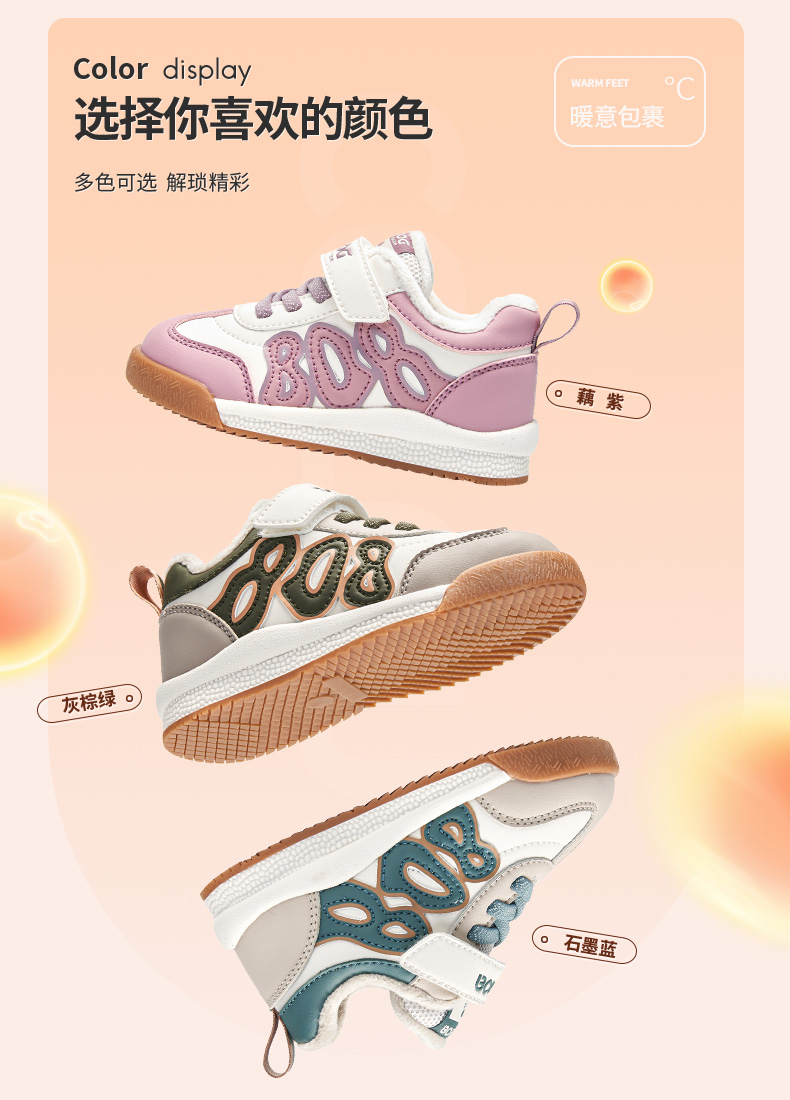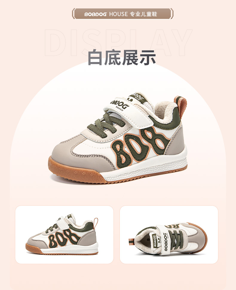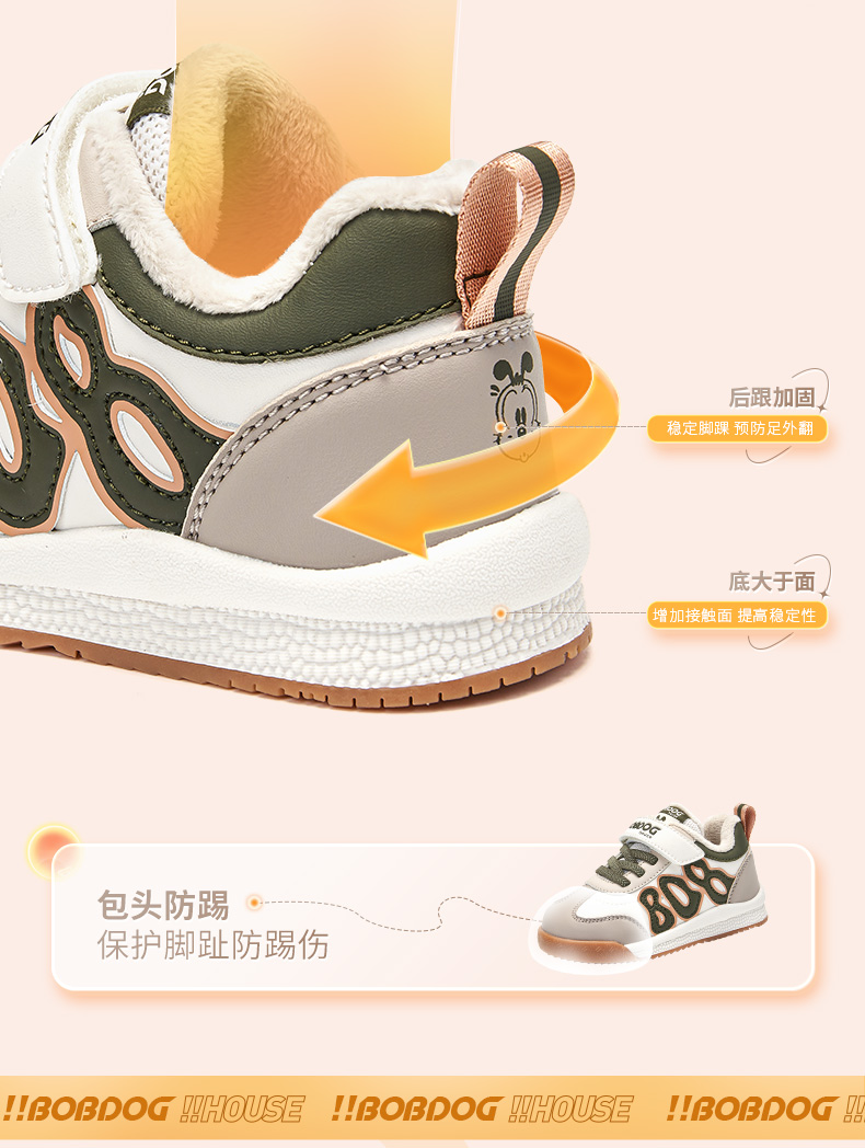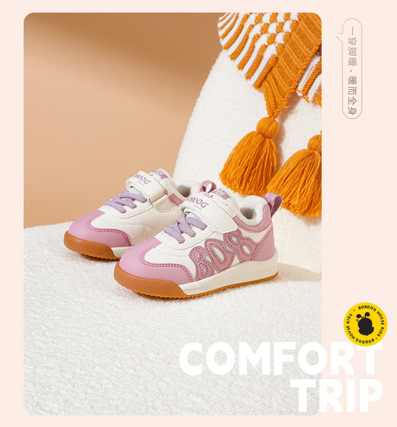 商品名称:巴布豆house童鞋冬季新款小童时尚休闲板鞋男女童加绒保暖二棉鞋子