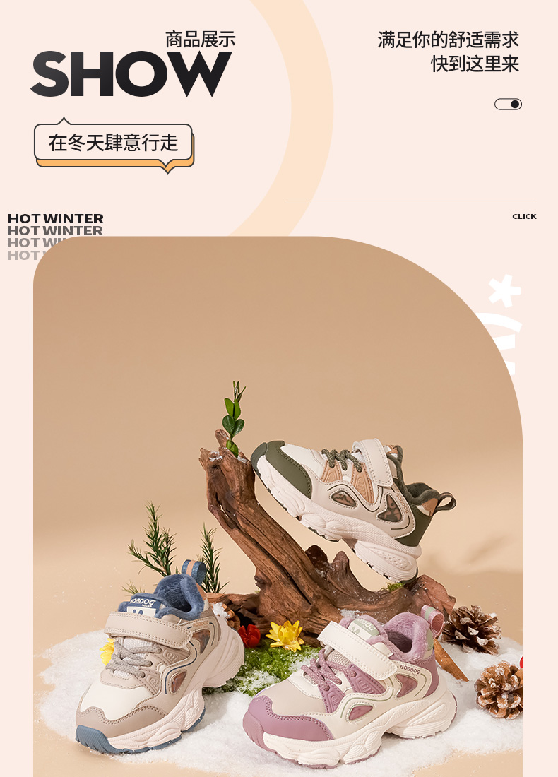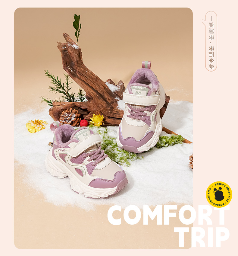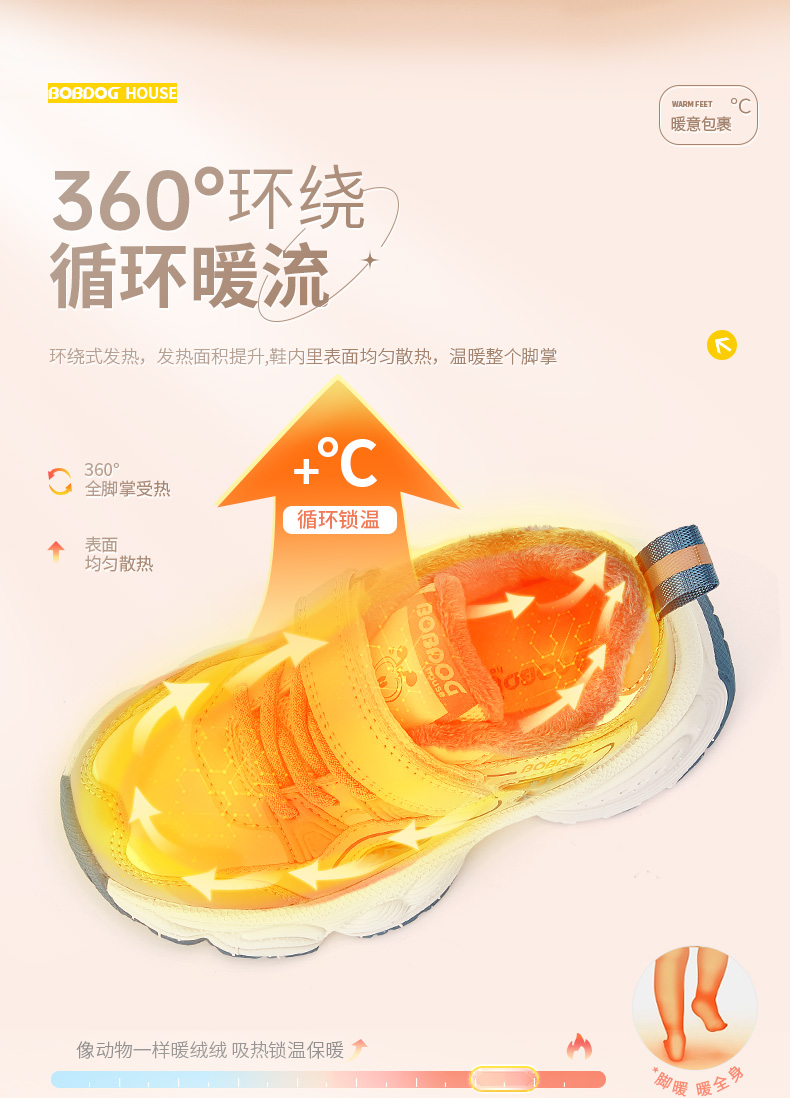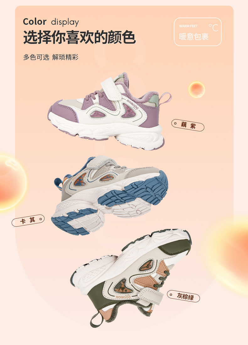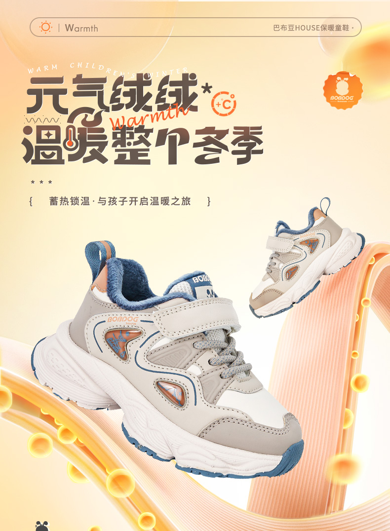 商品名称:巴布豆house童鞋冬季新款男女童保暖加厚休闲鞋加绒舒适防滑运动鞋