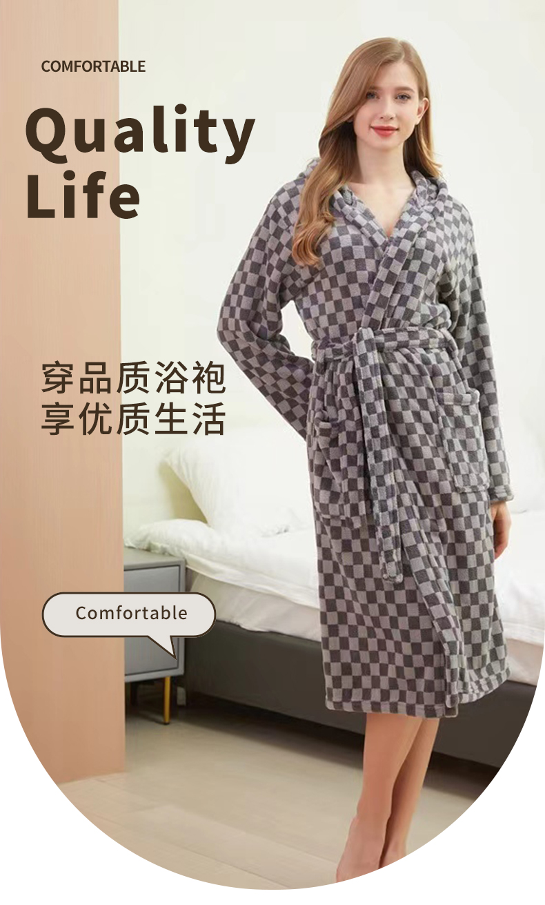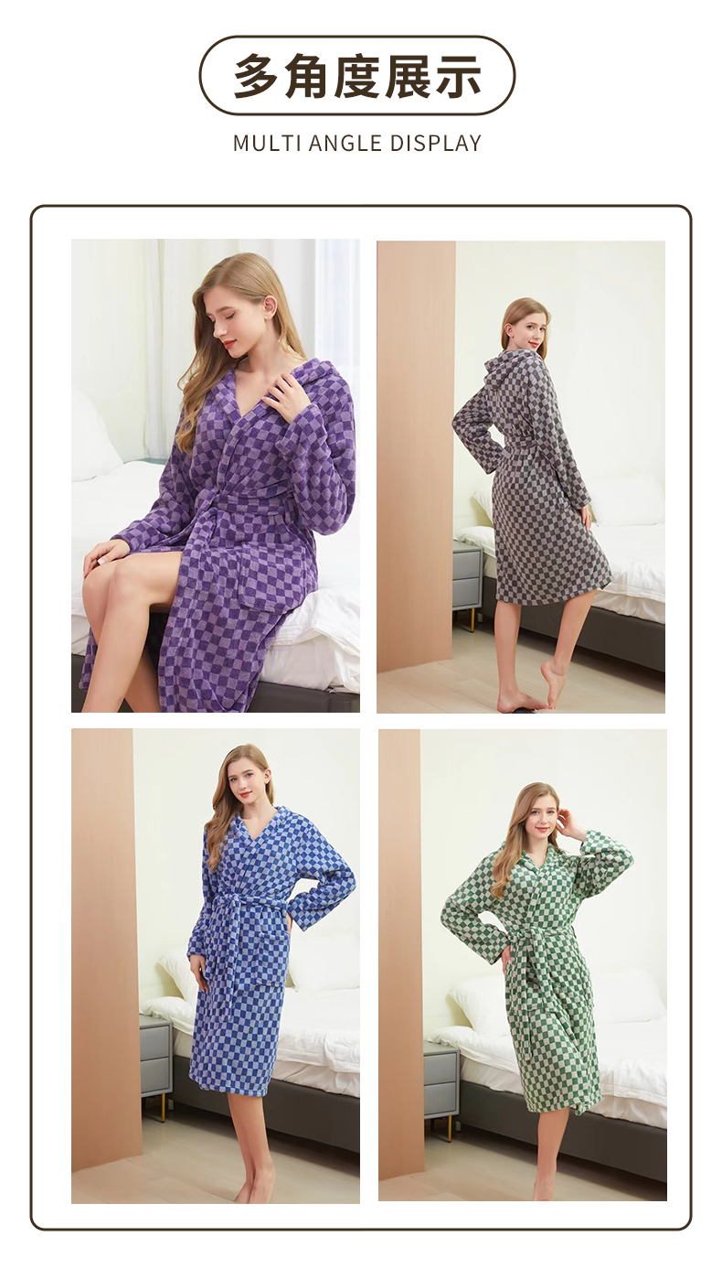 商品名称:【包邮】联童幼佳成人浴袍时尚印花提花款睡袍柔软加厚情侣家居服睡衣带帽连帽浴衣