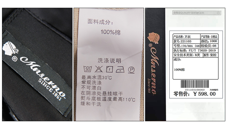 商品名称:曼西尔奴男士纯色简约宽松百搭舒适纯棉保暖磨毛卫衣221103TM