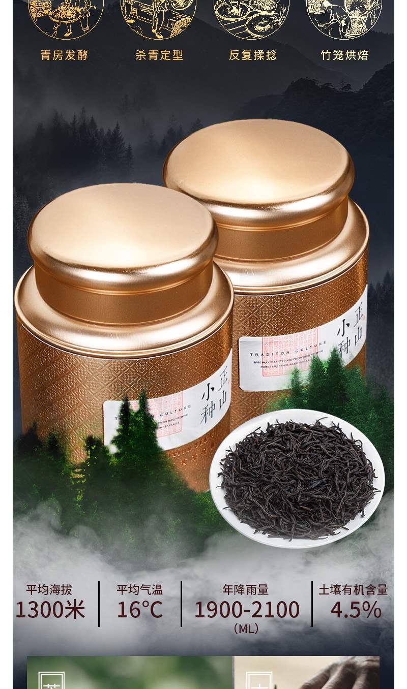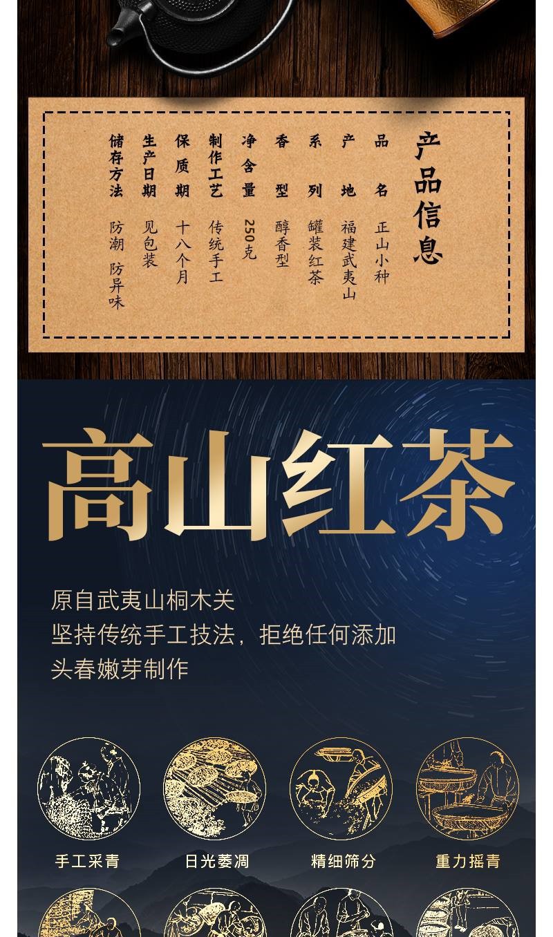 商品名称:【礼盒装250g】正山小种红茶耐泡礼盒装茶叶高山桐木关古树花香250g