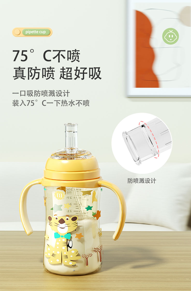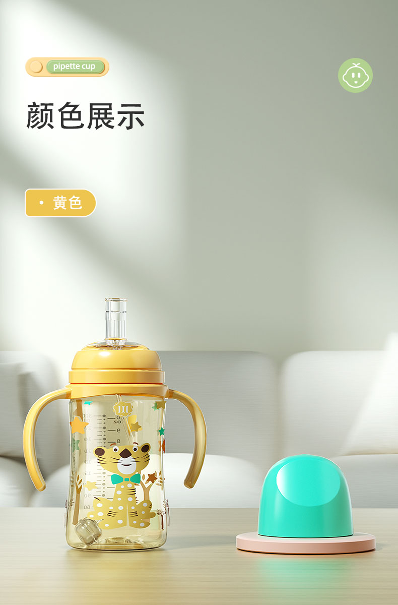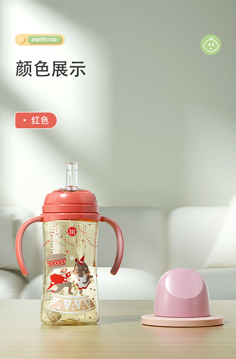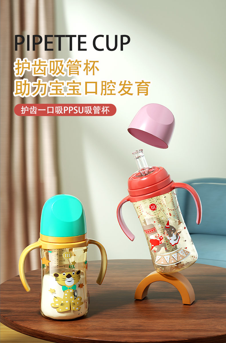 [贝**亲同款]爹地妈咪ppsu背带学饮杯吸管杯直饮吸管奶瓶喝水杯直饮杯饮水杯
