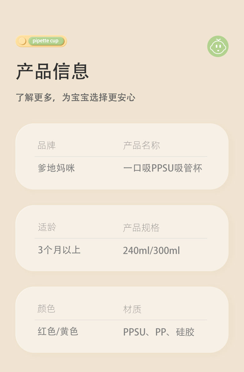 商品名称:[贝**亲同款]爹地妈咪ppsu背带学饮杯吸管杯直饮吸管奶瓶喝水杯直饮杯饮水杯