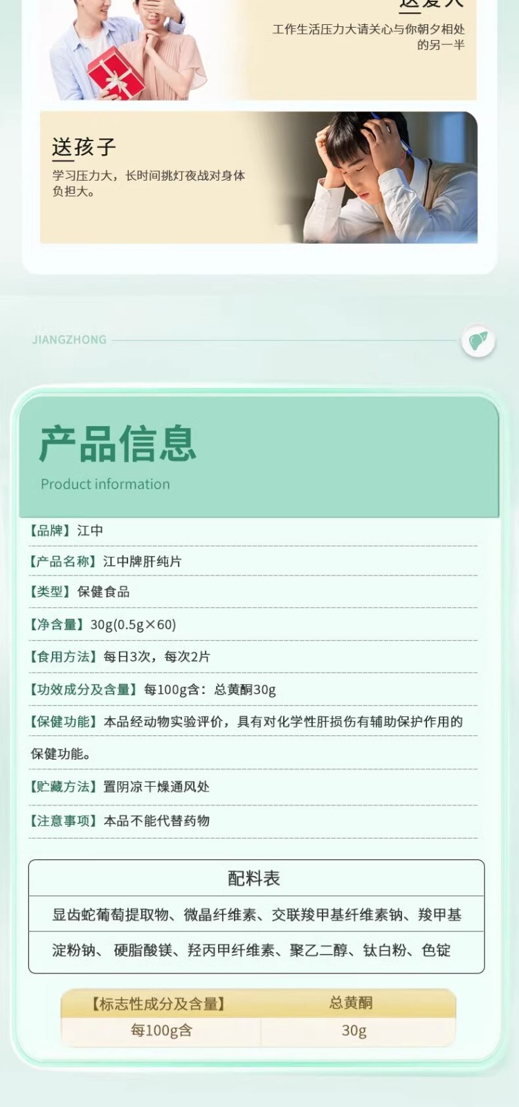 商品名称:江中牌肝纯片60粒成人中老年男女加班熬夜喝酒应酬解烟酒养肝护肝片保健品