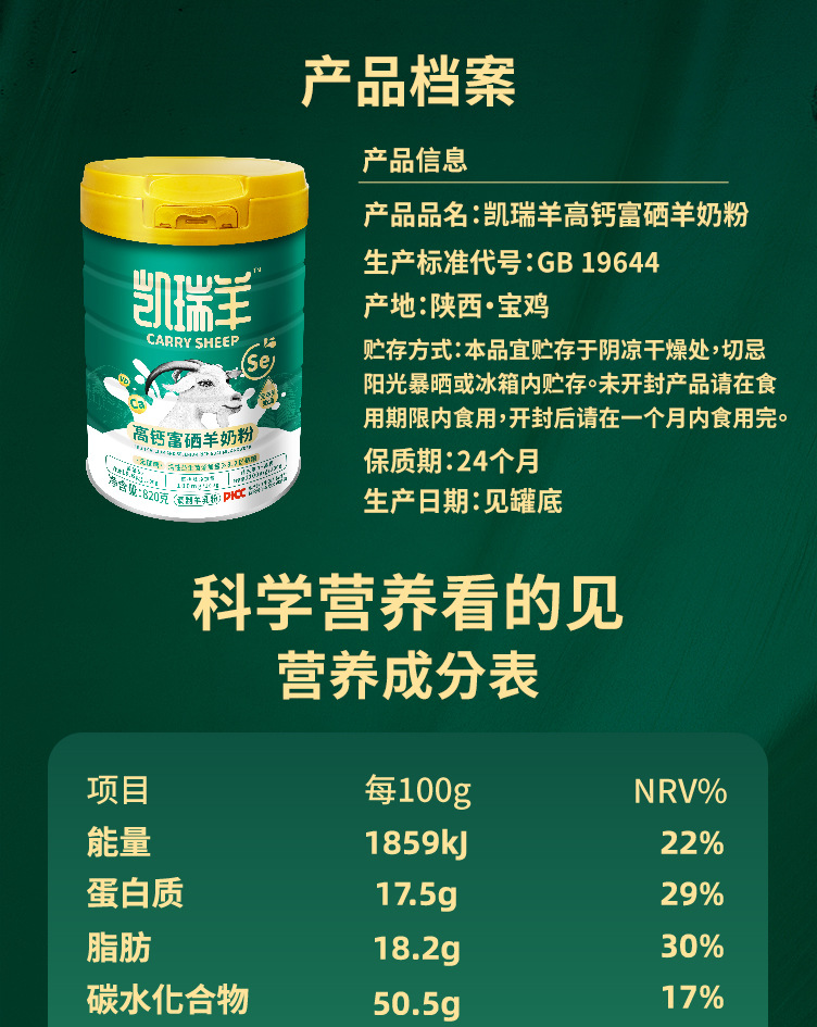 商品名称:【新国标】凯瑞羊gao.钙富硒羊奶粉820克/罐无蔗糖三高可中老年成人补充影响增强营养