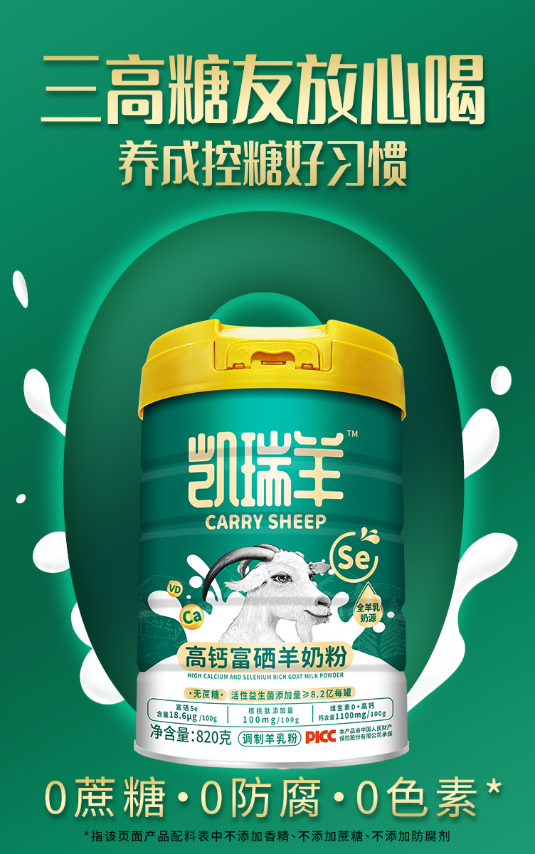 【新国标】凯瑞羊gao.钙富硒羊奶粉820克/罐无蔗糖三高可中老年成人补充影响增强营养