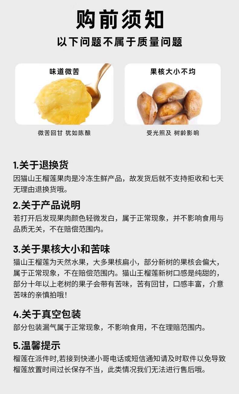 商品名称:【顺丰配送】淘鲜拾光保4房冷冻猫山王榴莲