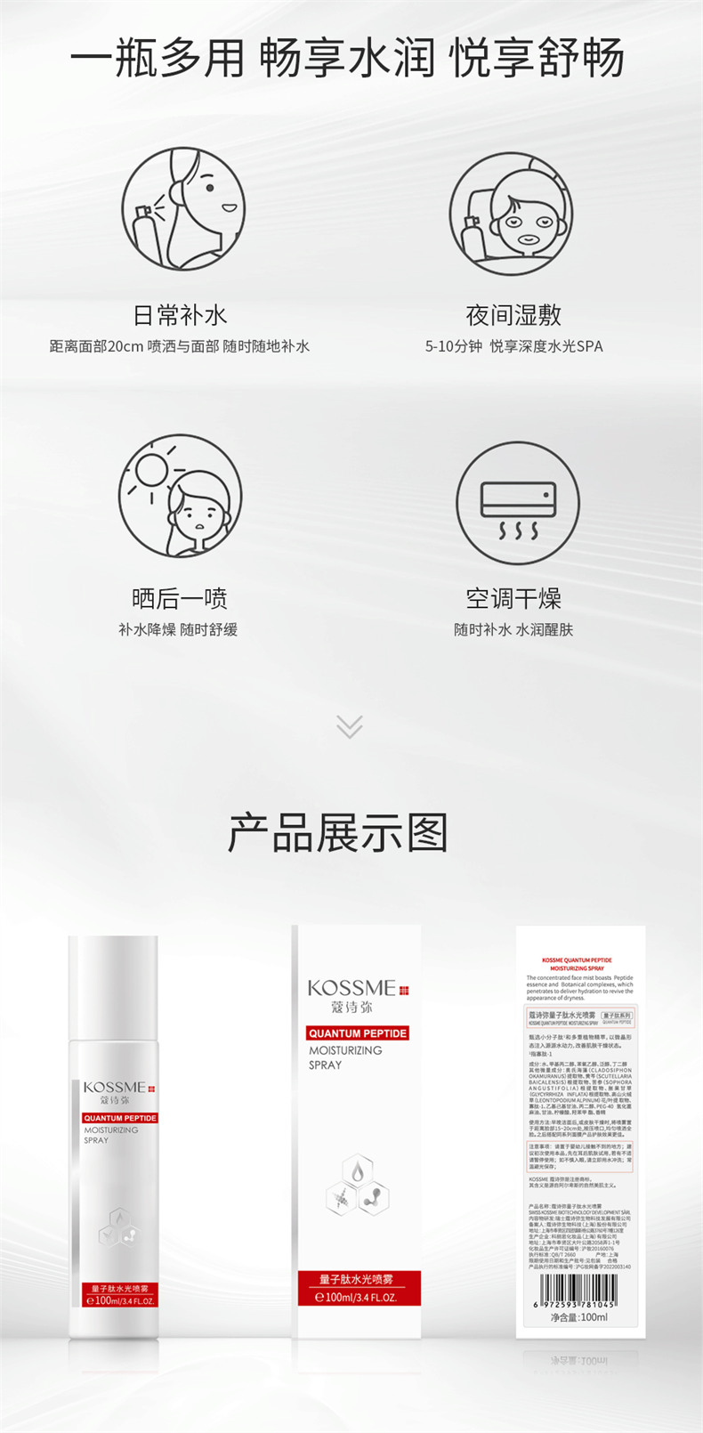 商品名称:KOSSME/蔻诗弥量子肽水光喷雾100ml(专柜版)