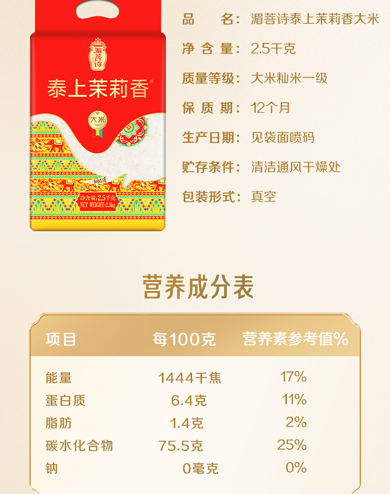 商品名称:湄菩诗泰上茉莉香大米2.5kg