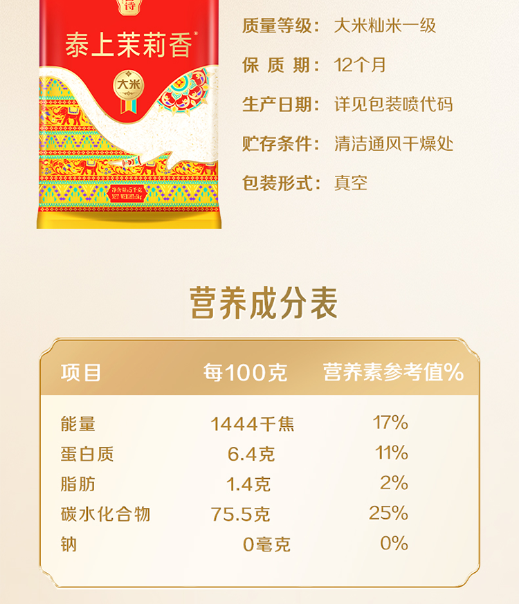 商品名称:湄菩诗泰上茉莉香大米5kg