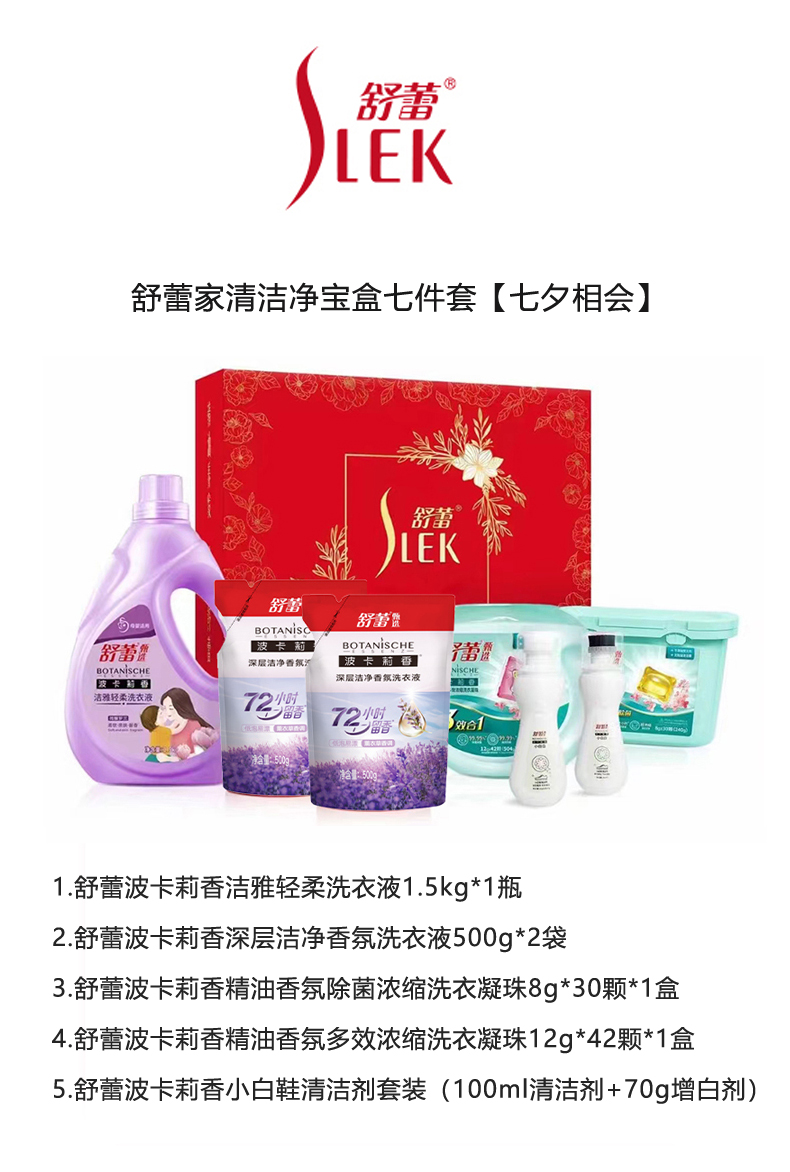 商品名称:【京东/顺丰配送】SLEK/舒蕾七夕相会家清洁净宝盒七件套3314g+100ml