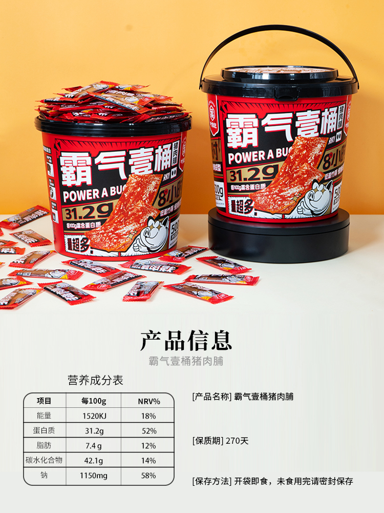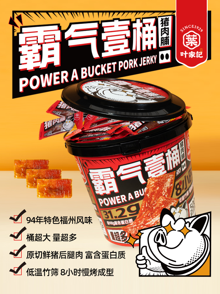 商品名称:叶家记霸气一桶原切猪肉脯休闲零食500g